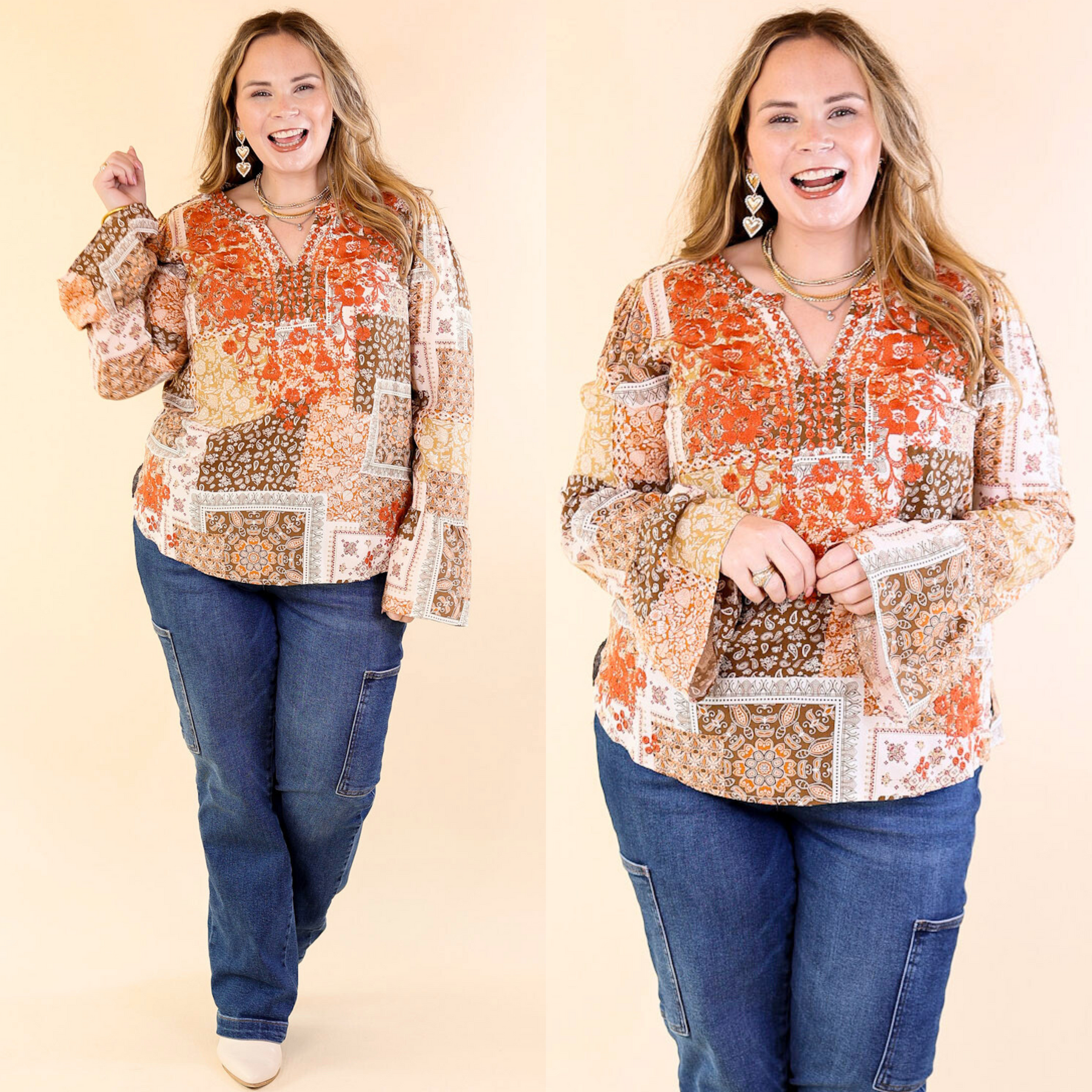 Look stylish and vibrant in our Everything Counts Floral Embroidered Top! This top features beautiful rust orange embroidery and a variety of paisley and floral prints. It comes with a notched neckline and sleeves that flare out at the wrist for an elegant and eye-catching look. Create lasting memories in this olive green mix top!