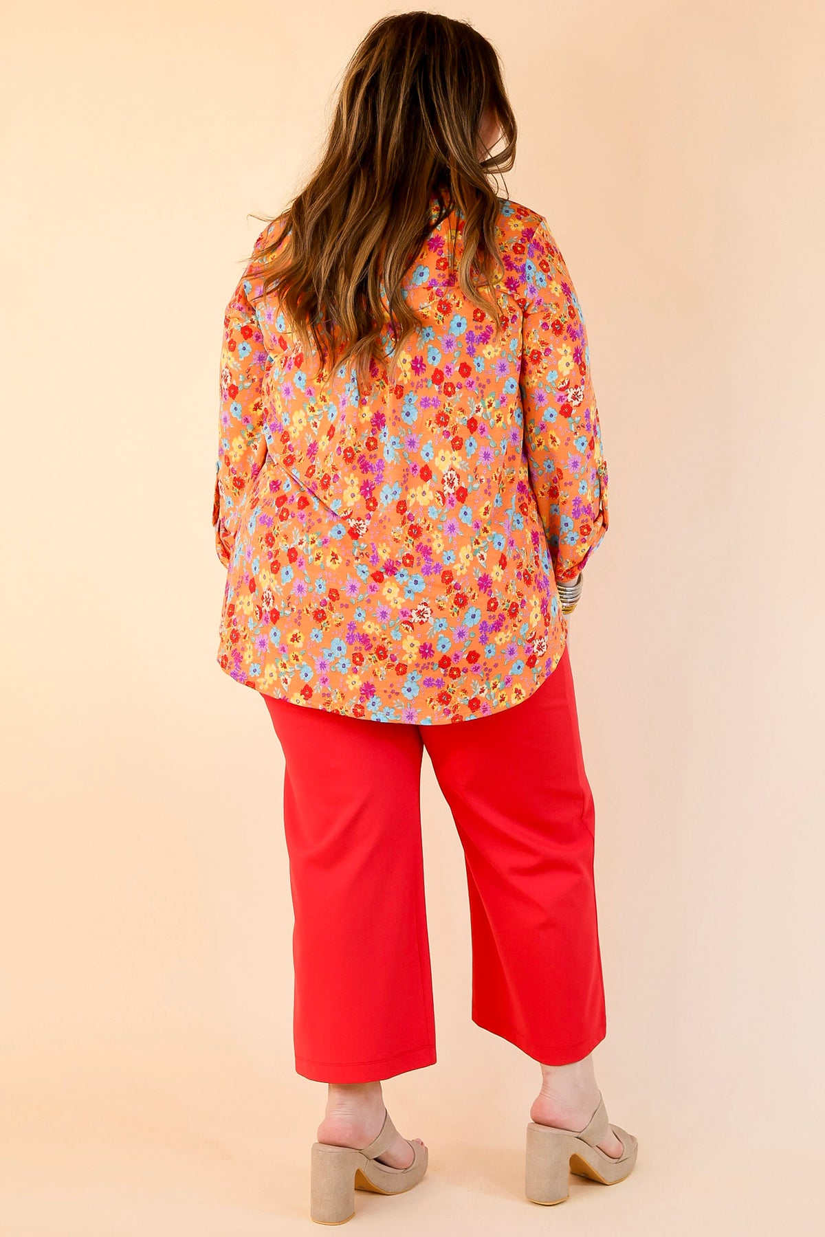 Urban Elegance Floral Print 3/4 Sleeve Tunic Top in Orange