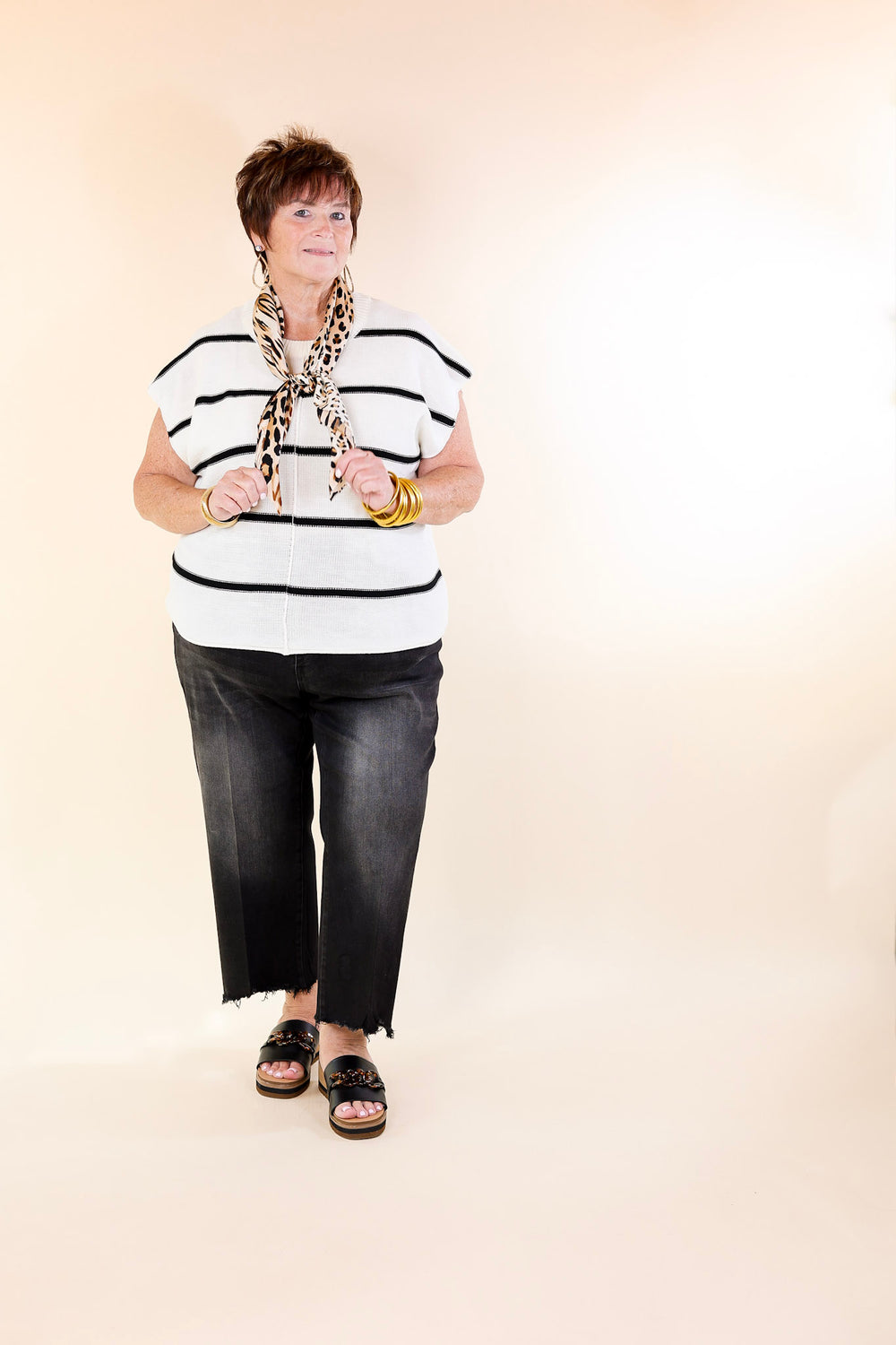 In Harmony Striped Sweater with Cap Sleeves in Ivory
