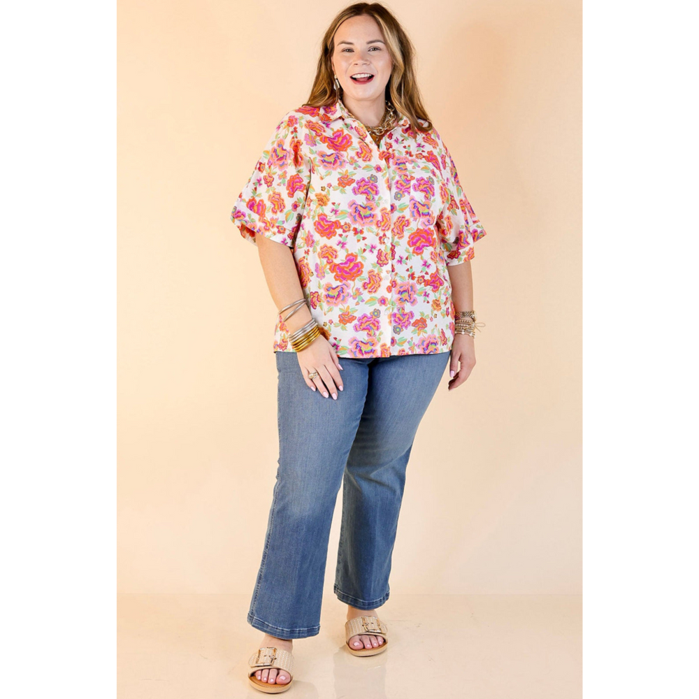 Enchanted Blooms Floral Print Top with Collar in Off White
