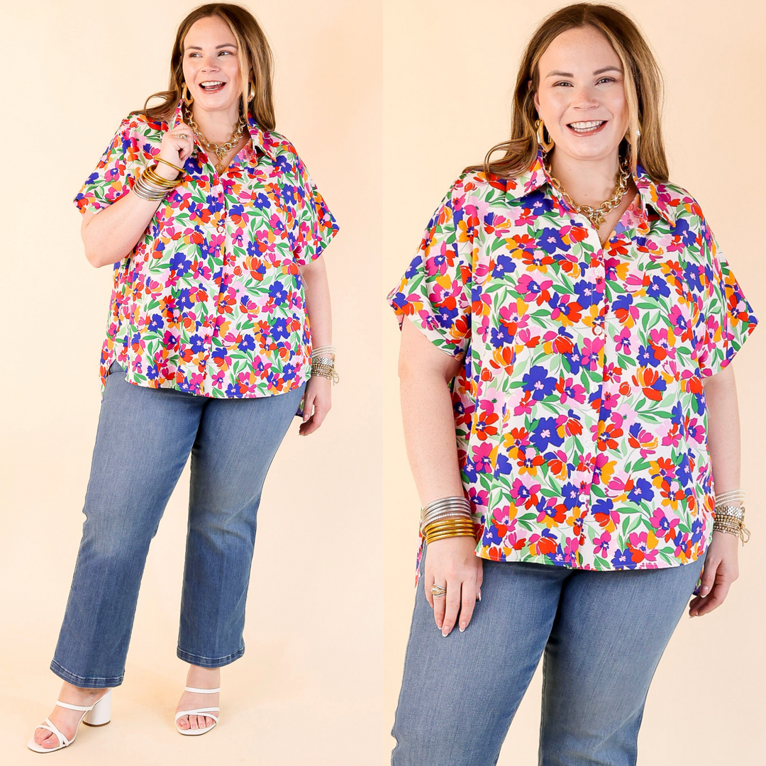 Adventure Awaits Floral Print Button Up Top in Ivory