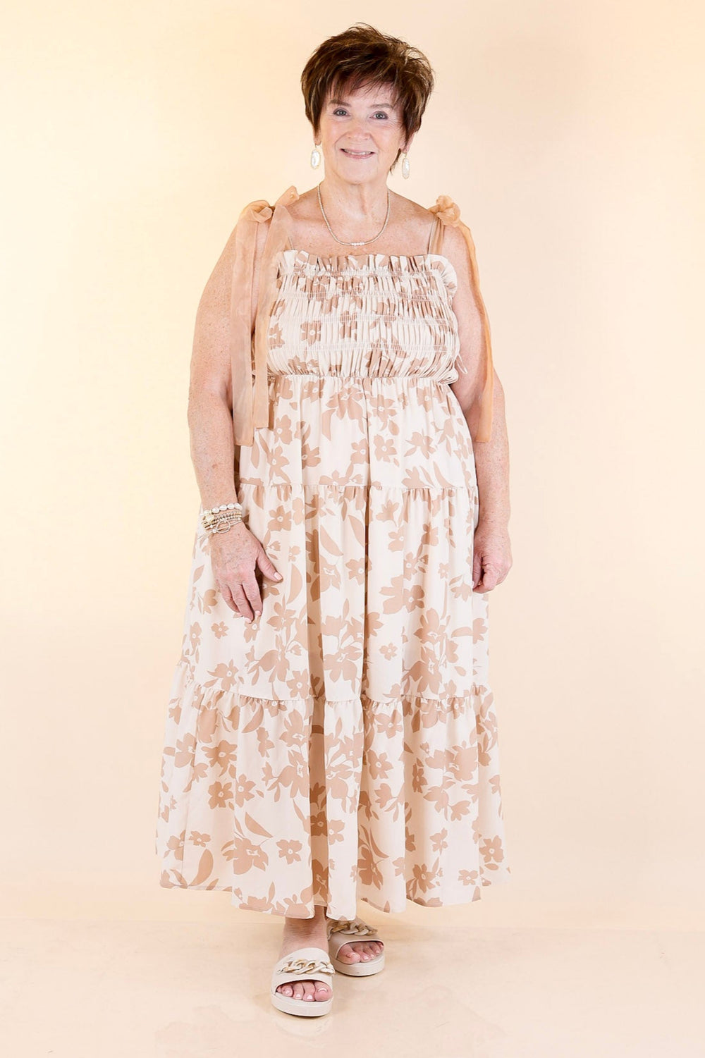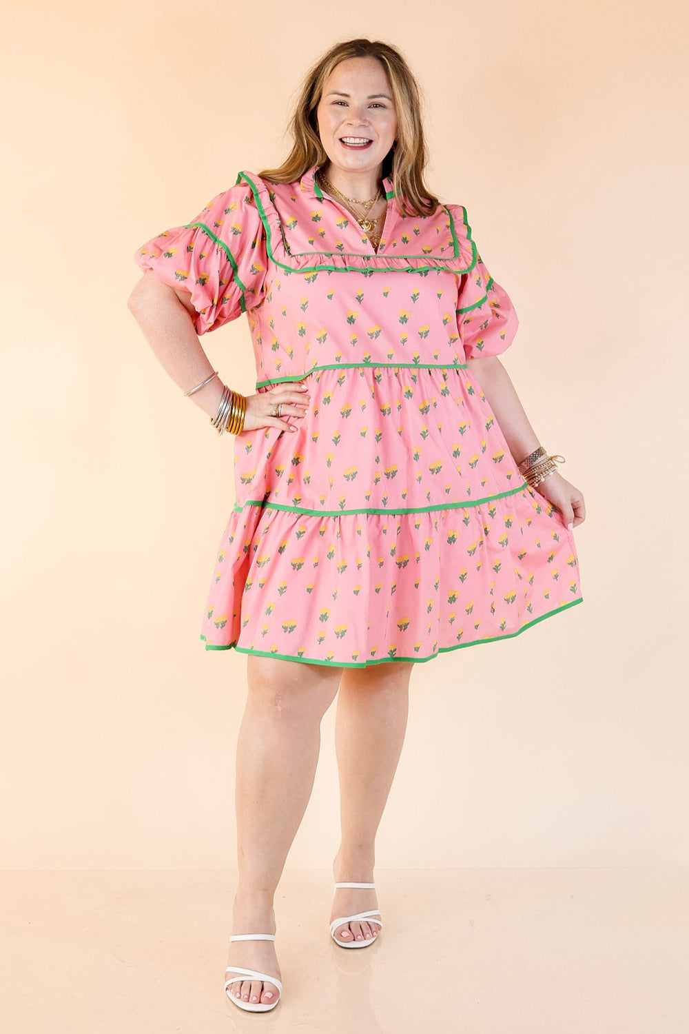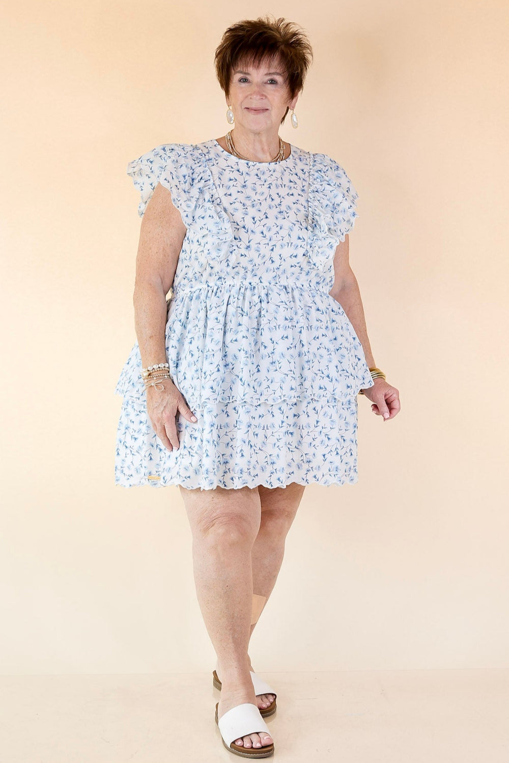 Simply Southern | Daisy Dreams Tiered Floral Print Dress with Ruffle Cap Sleeves in White