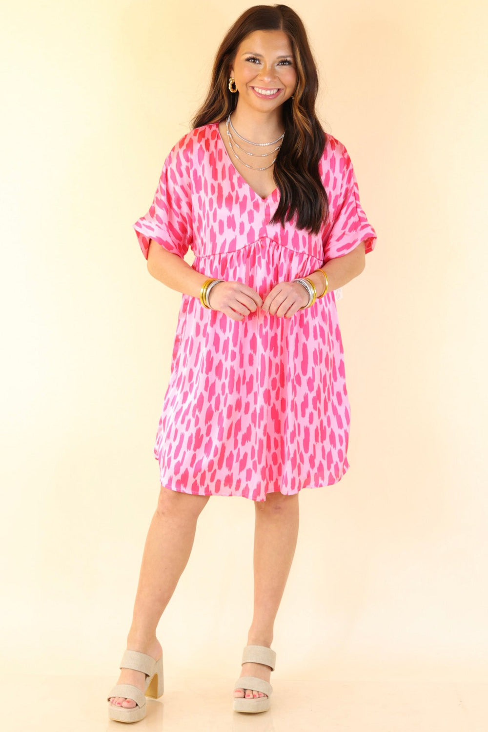 Wildly Loveable Satin Dress With Leopard Print in Beige