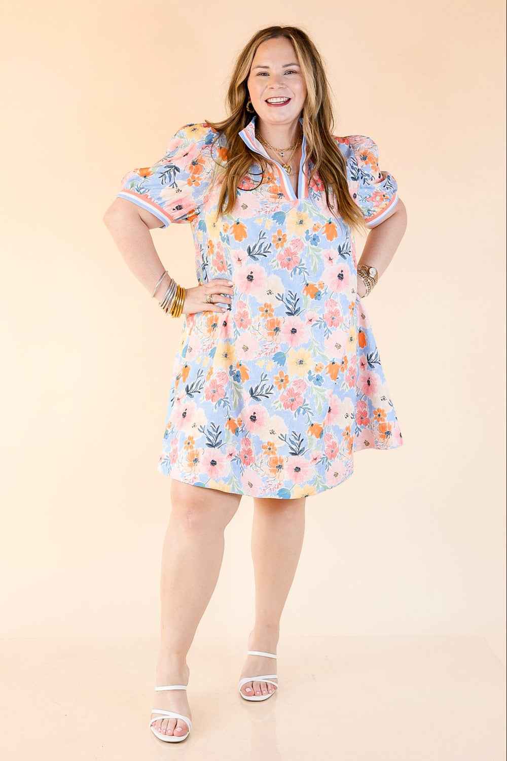 Blooming Chic Button Up Floral Print Dress with Collar in Peach