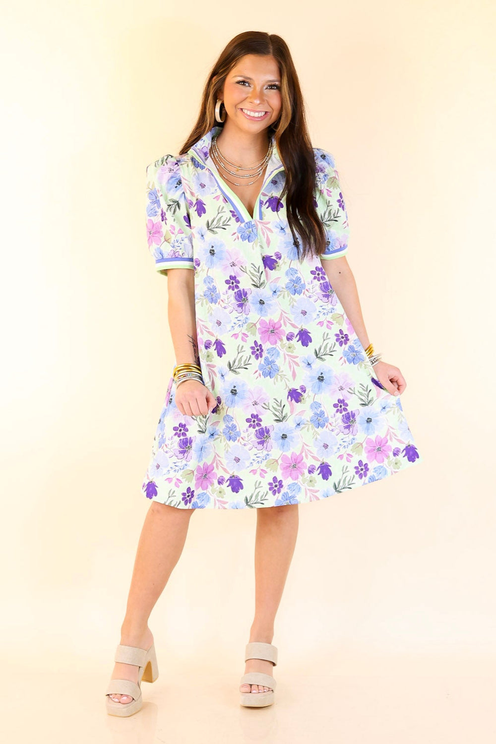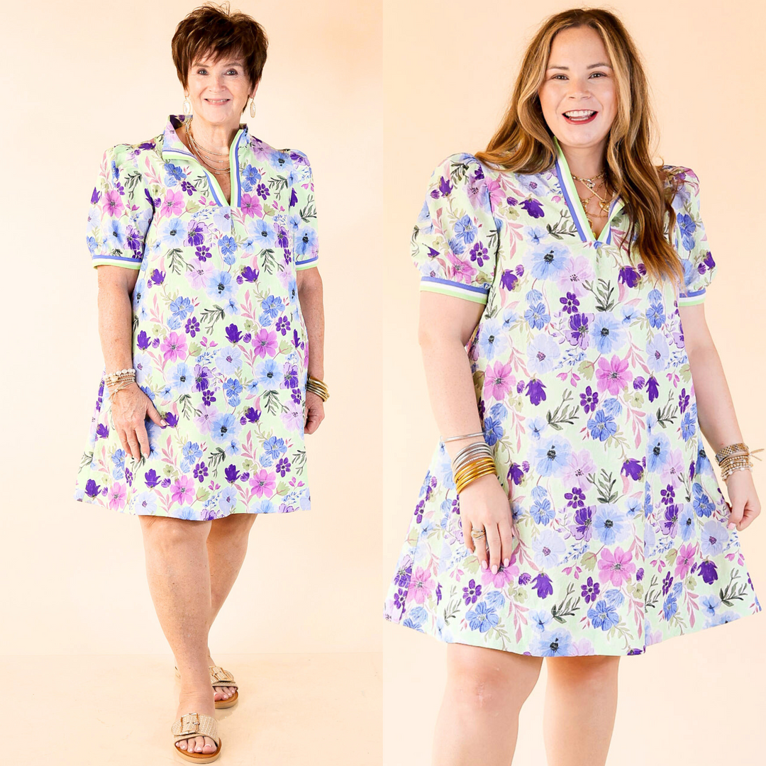 Lovely as Ever V Neck Floral Print Dress in Blue and Mint Green Mix