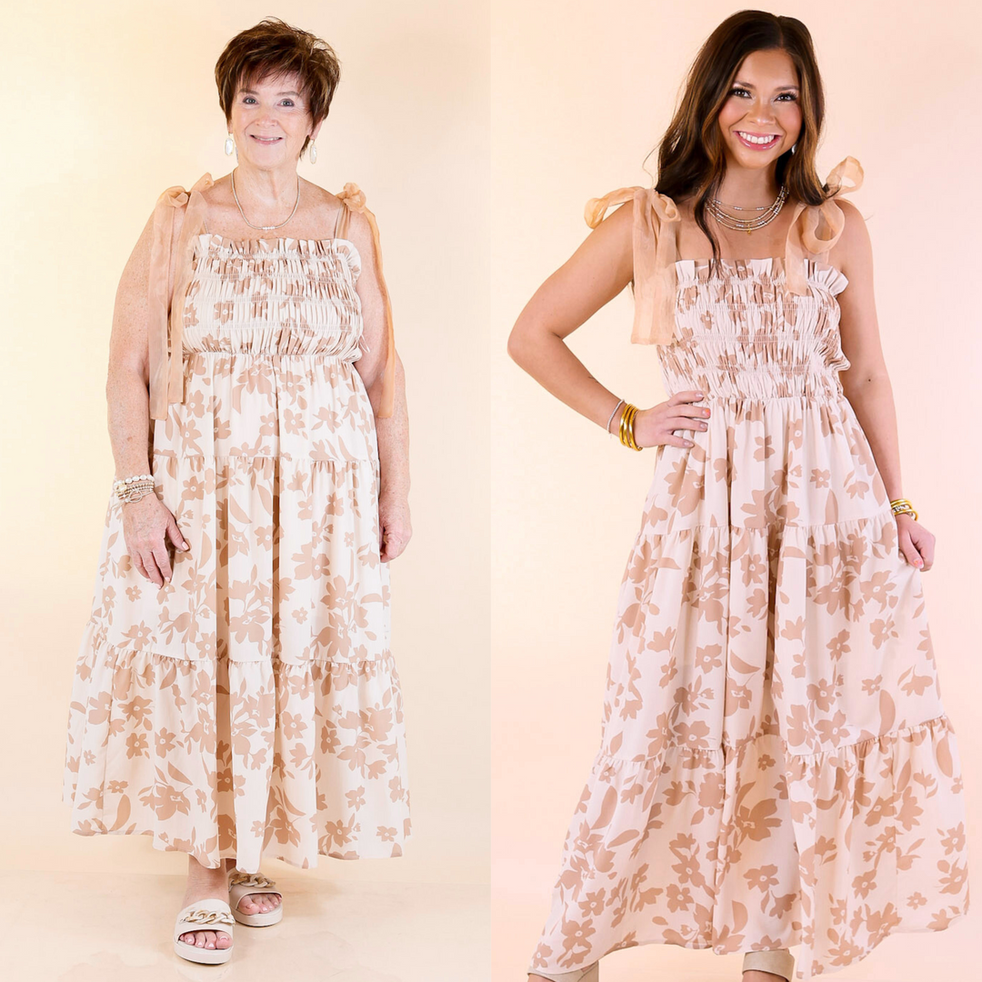 Timeless Blossom Floral Print Button Up Dress in Mocha Brown