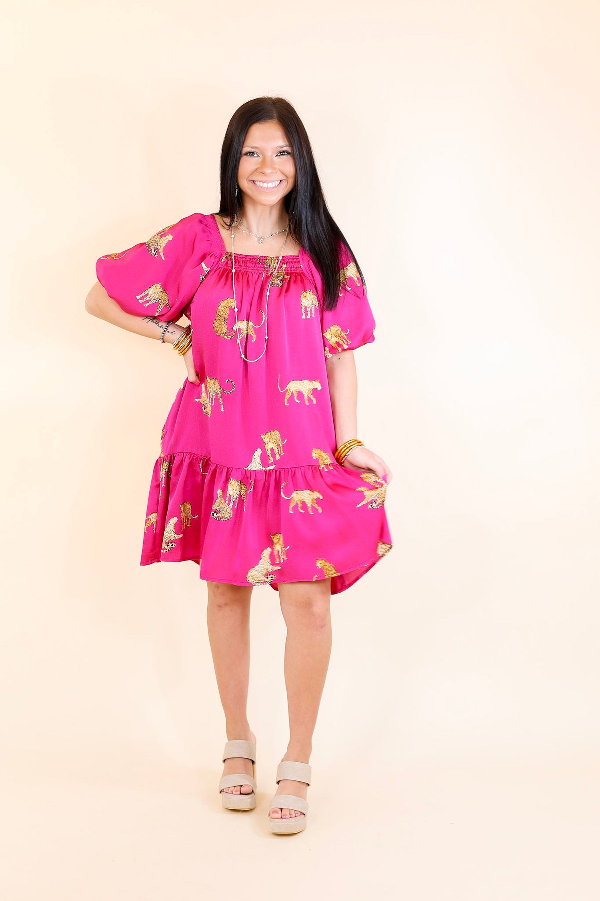 Feel your most flirty and fabulous in our Leopard Print Satin Midi Dress, designed to make you look and feel your best! This fun dress features statement puff sleeves, pockets, a tiered skirt, and a flattering elastic square neckline. Stand out from the crowd in this stylish and fashionable frock and make this your go-to dress for every occasion!