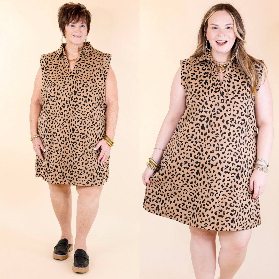 Polished Perfection Cheetah Print Cap Sleeve Dress with Collar in Tan