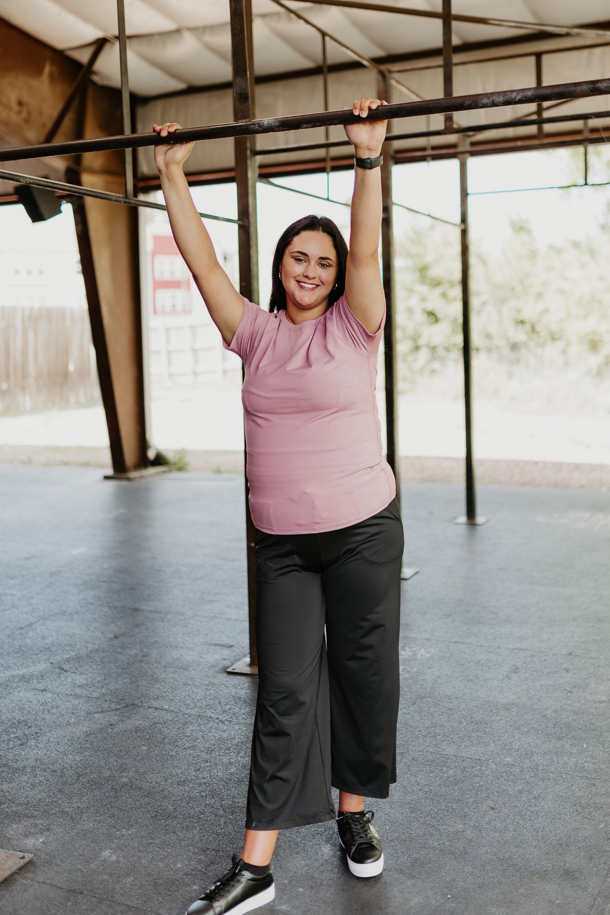 Breaking Records Fitted Short Sleeve Active Top in Mauve Pink