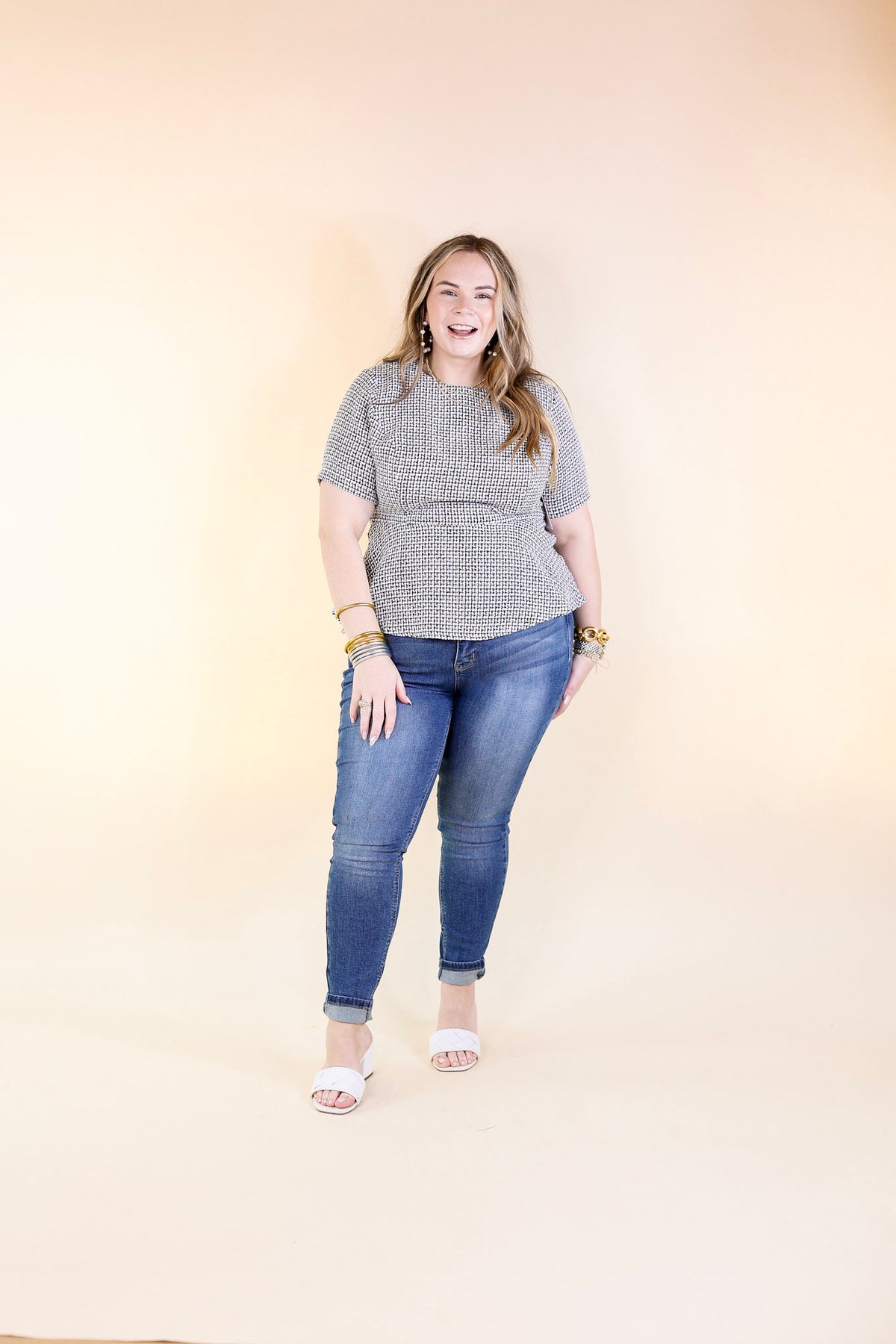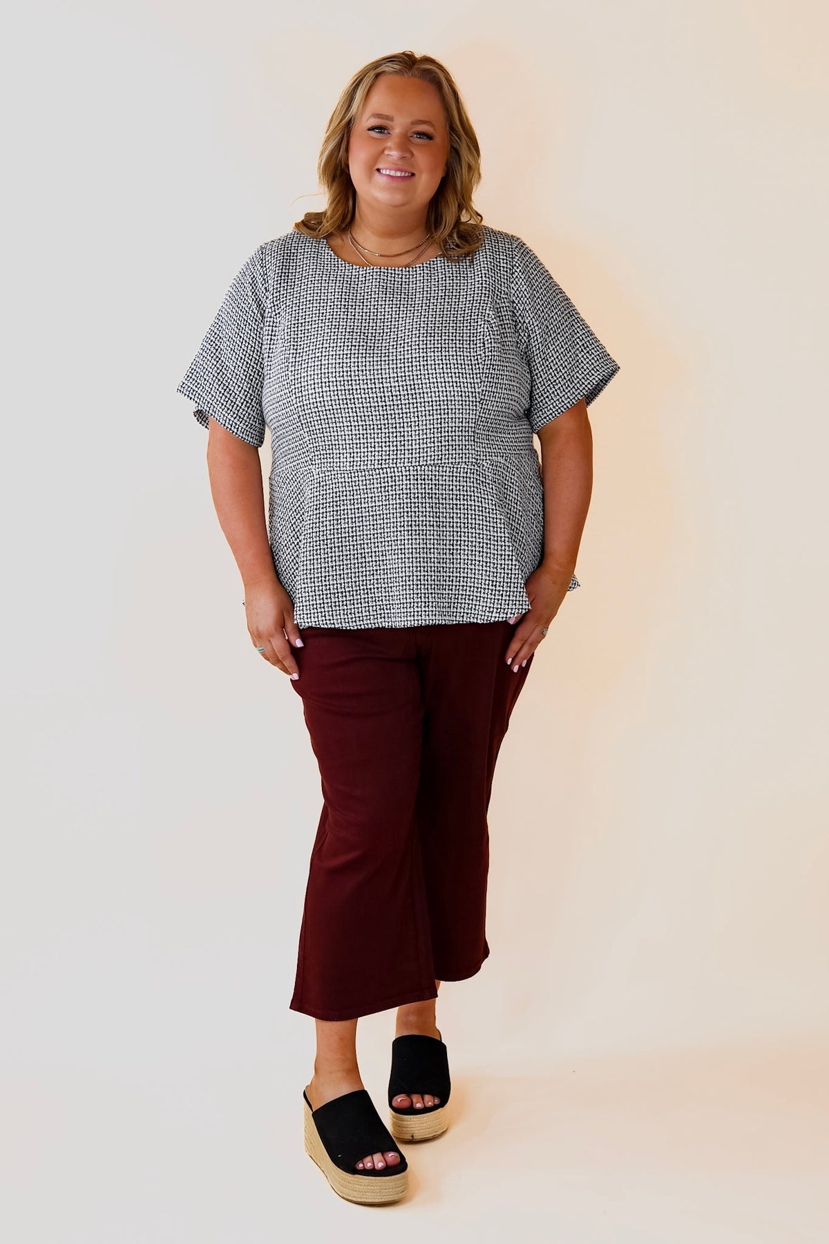 Back and Better Tweed Peplum Top with Short Sleeves in Black and White - Giddy Up Glamour Boutique