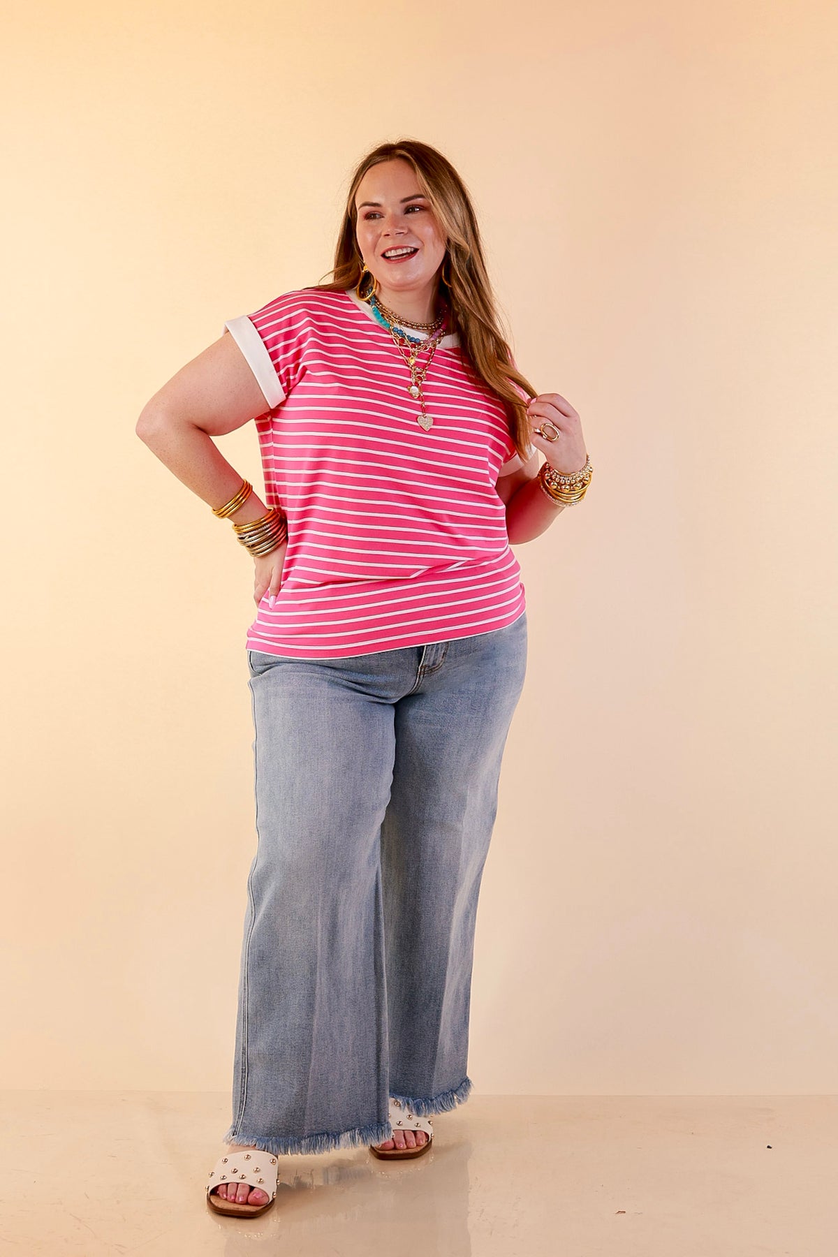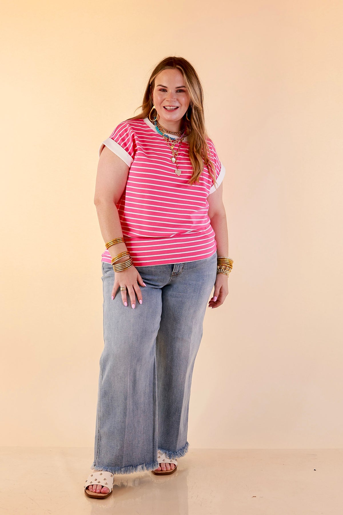 Bold but still effortless. The Right on Repeat Stripe Top in Fuchsia Pink is eye-catching without feeling overdone. Whether you’re dressing it up or keeping things casual, this top delivers that confident, no-fuss style you’ll reach for again and again.