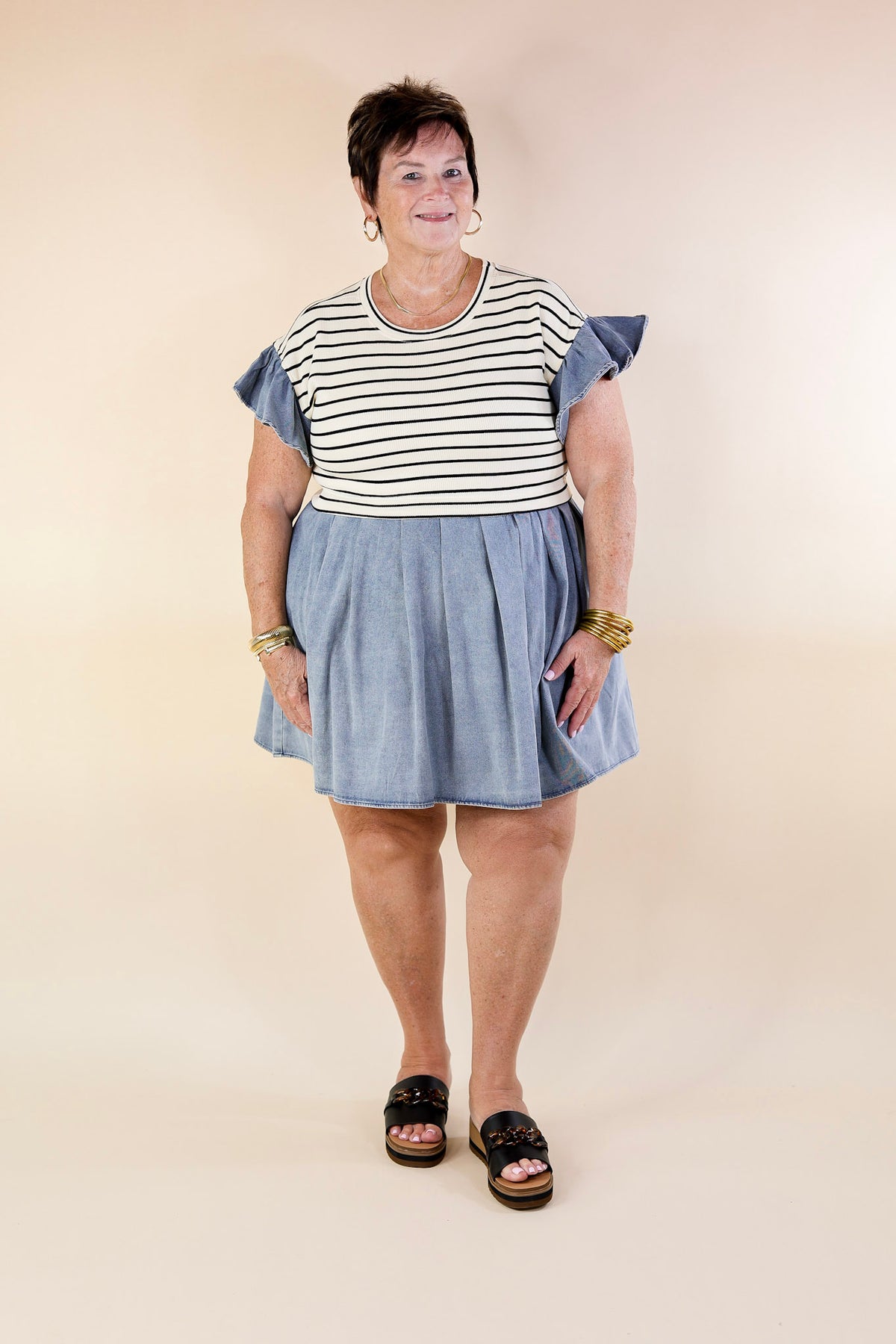 Discover the perfect blend of casual chic with our "Denim Duo" dress. This unique piece features a cream and black striped sweater-style top half, paired seamlessly with denim sleeves and a denim skirt. Designed for versatility and style, the "Denim Duo" dress effortlessly transitions from day to night, making it a must-have addition to your wardrobe. The cozy sweater material on top provides a comfortable, flattering fit, while the classic denim bottom adds a timeless touch. Ideal for any season, this dress is perfect for casual outings, work, or a night out.