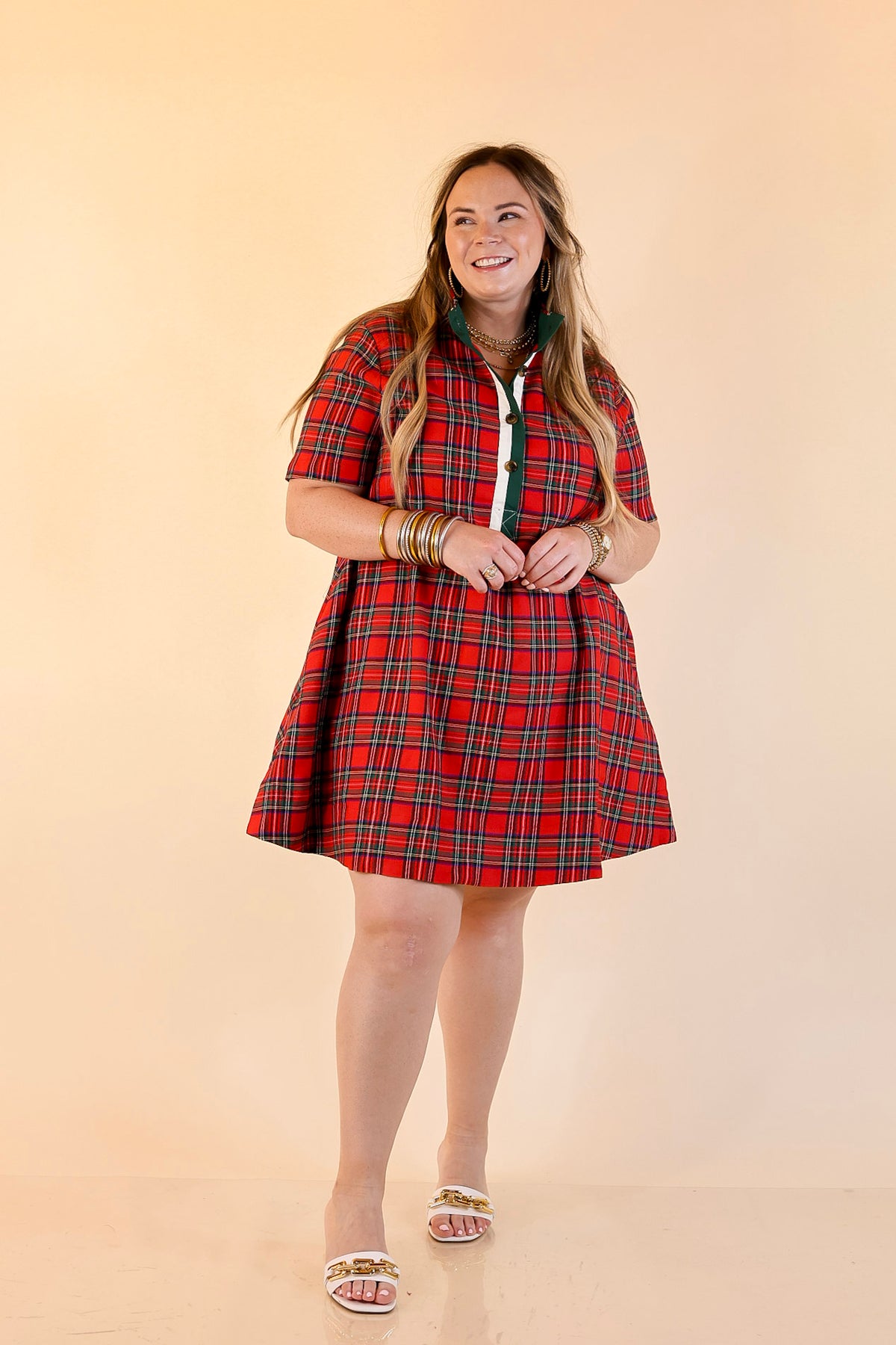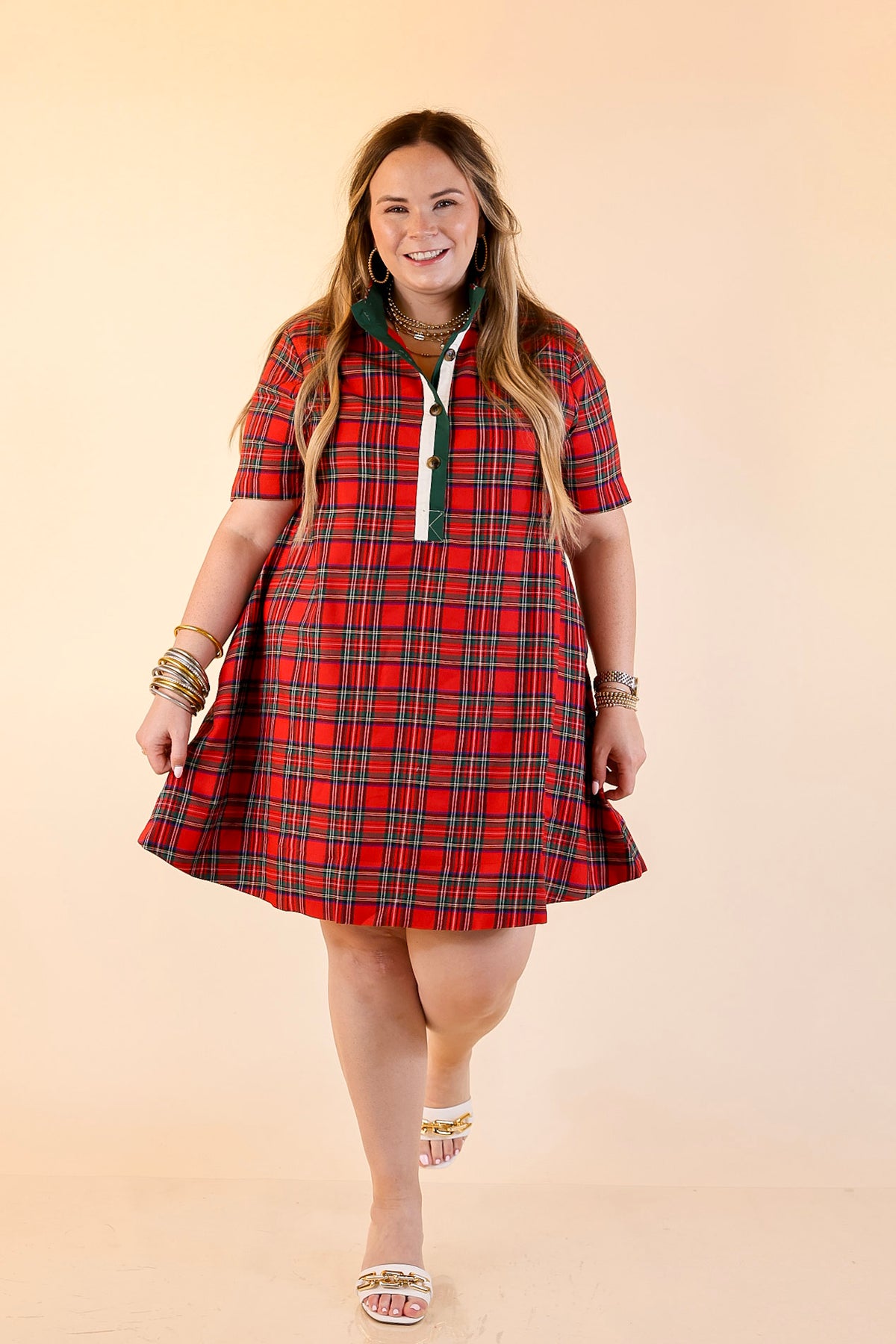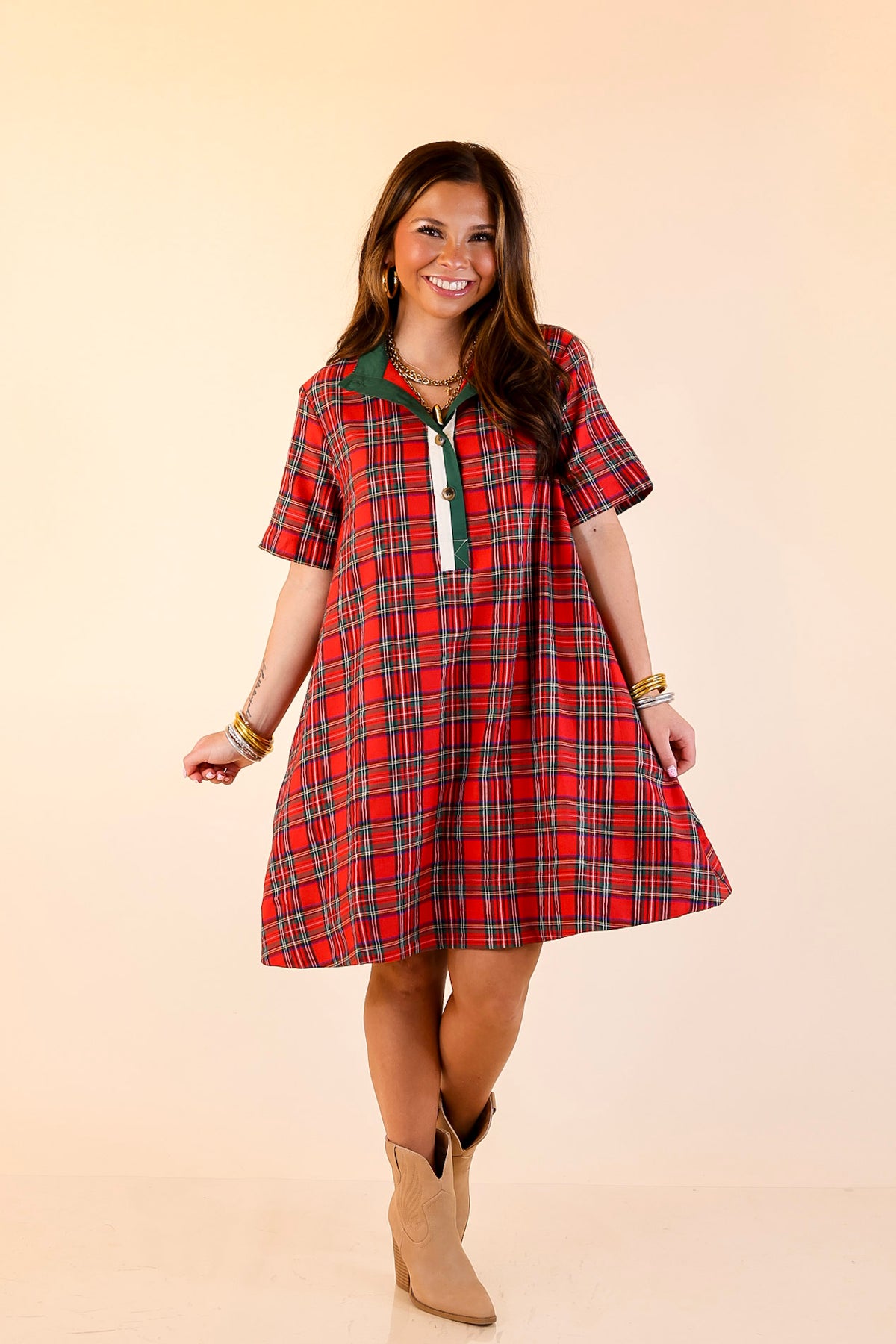 Meet the dress that makes seasonal dressing feel easy. The Seasonal Shift Plaid Dress brings a playful pop of red plaid with a contrasting green collar for that unexpected twist you’ll love.