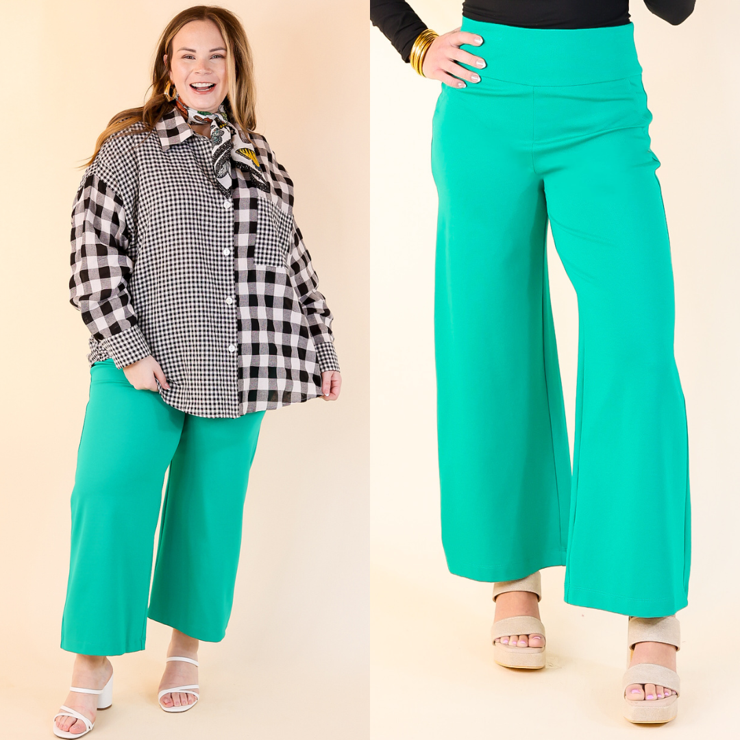 Confident Stride Cropped Wide Leg Pant in Jade Green