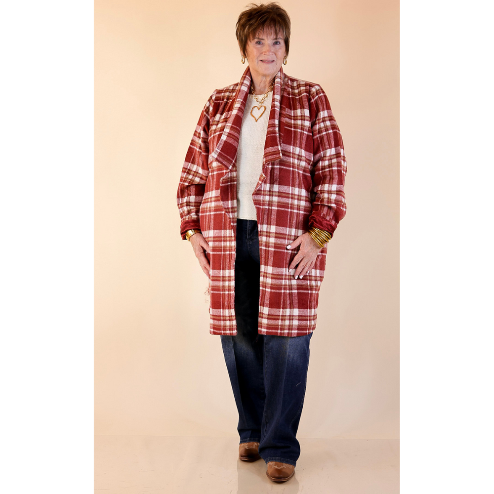 Mountain Ranch Long Plaid Jacket in Maroon
