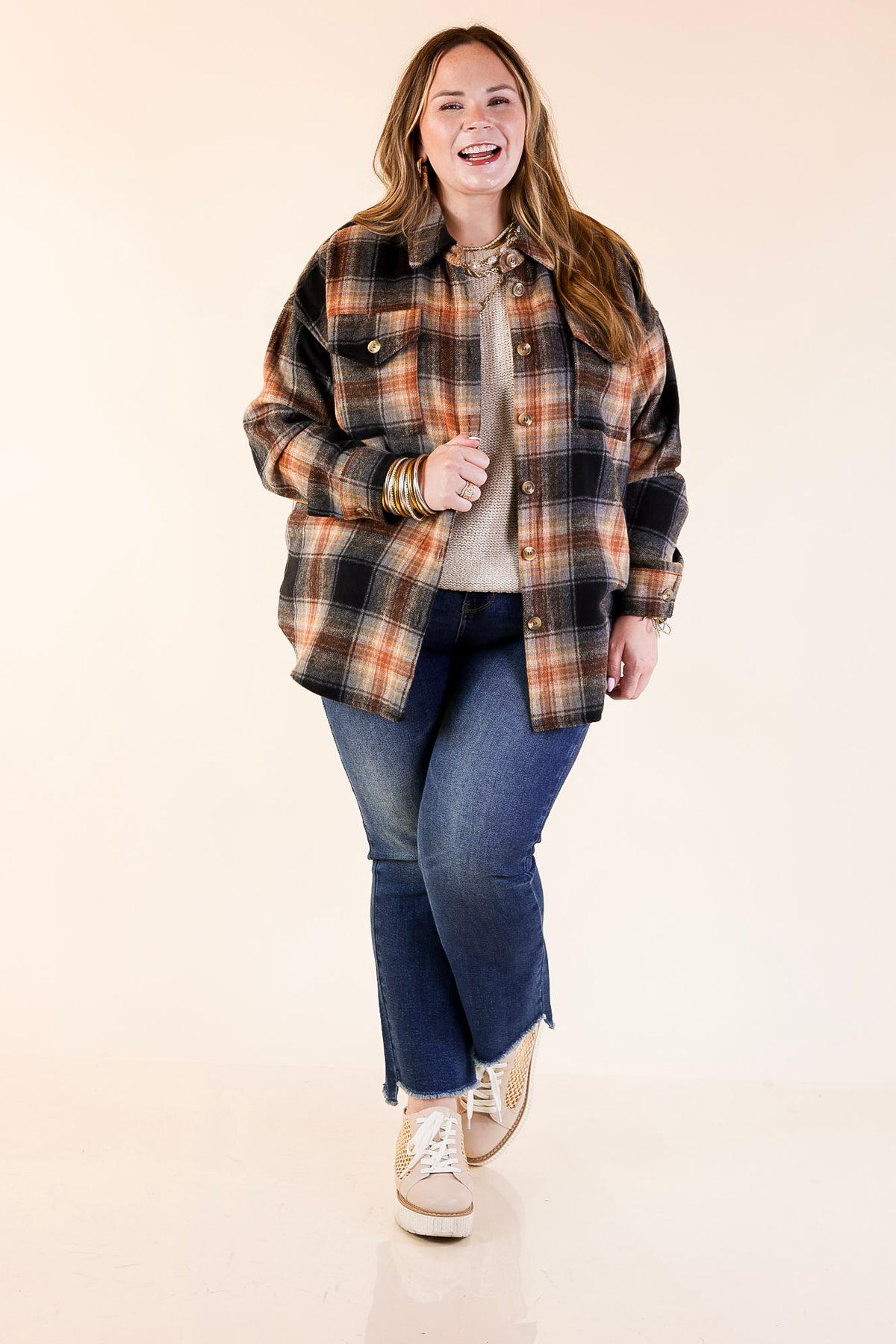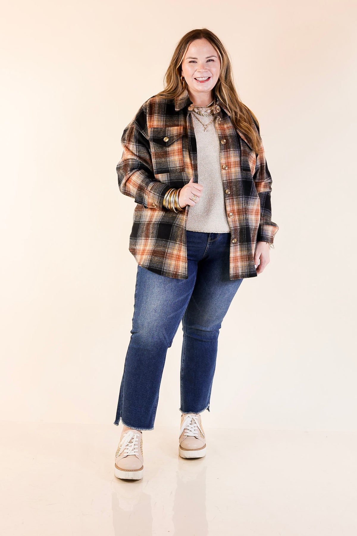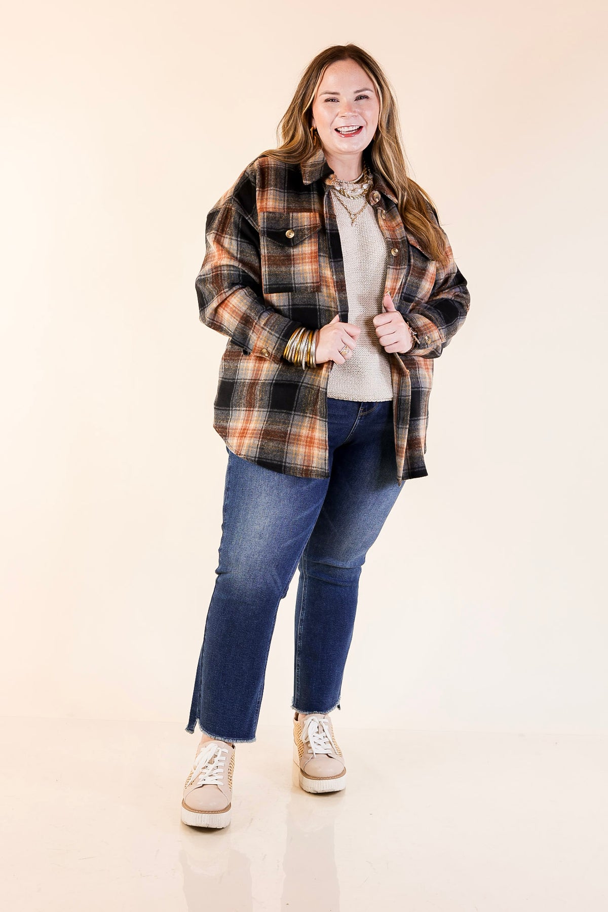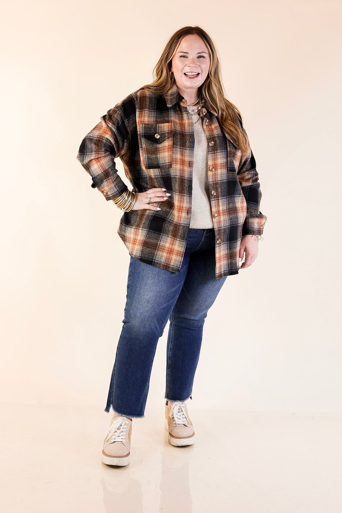 Kindness Everywhere Button Up Plaid Shacket in Black Mix