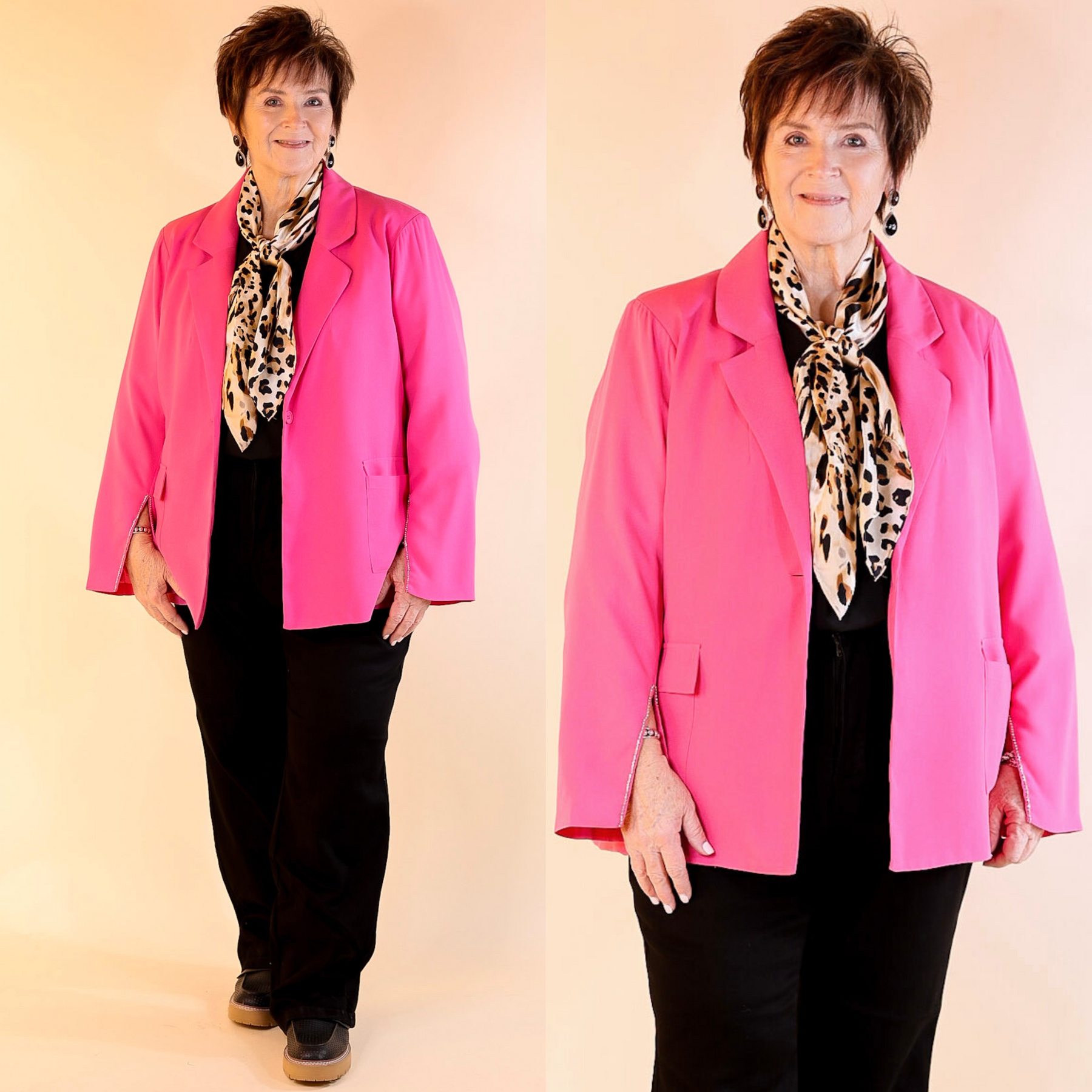 Plan For Success Crystal Slit Sleeve Blazer in Hot Pink