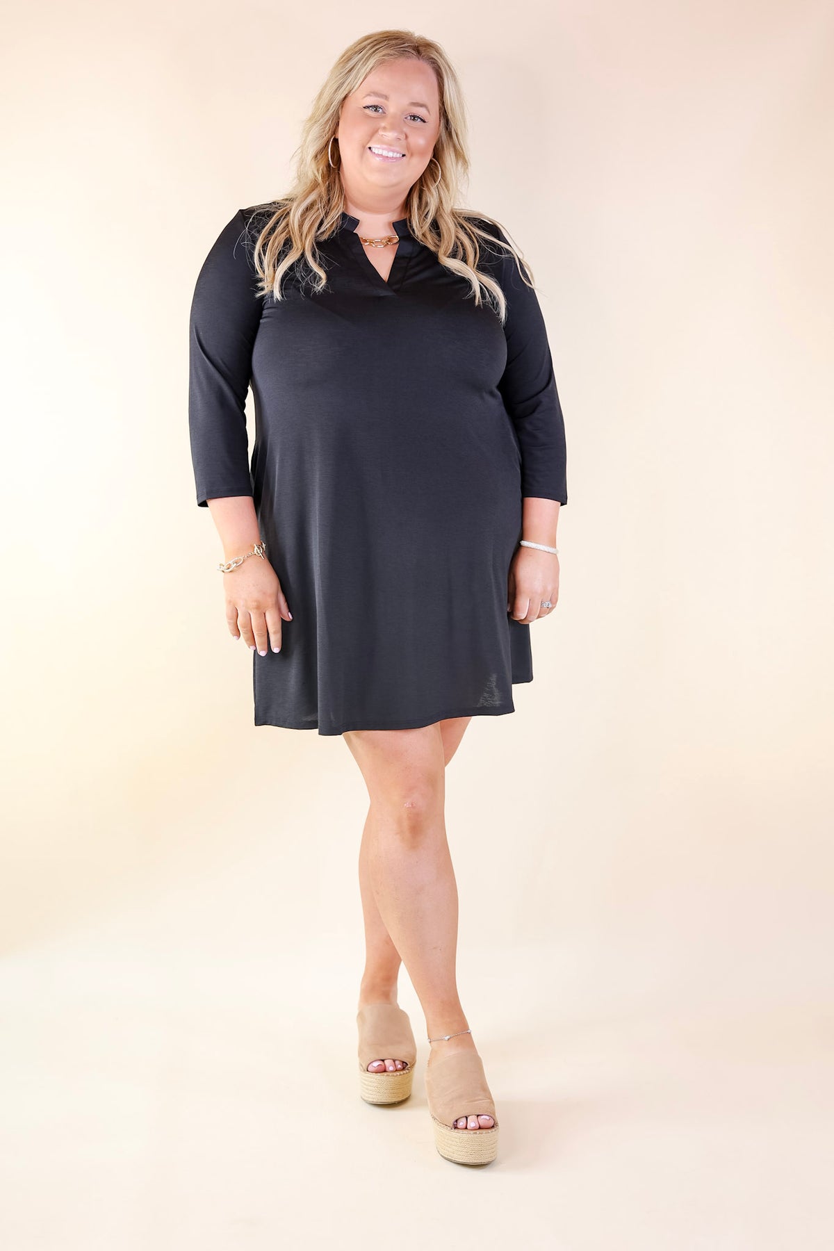 Best Discovery 3/4 Sleeve Mandarin Collar Dress in Black
