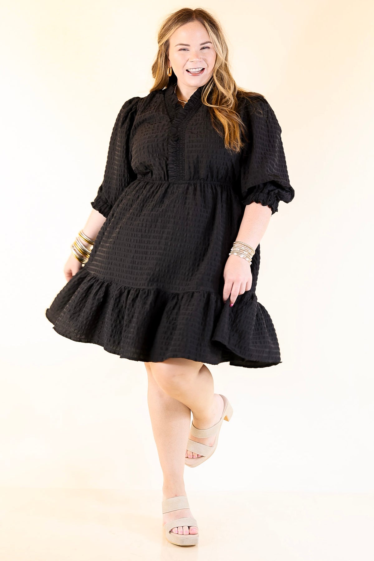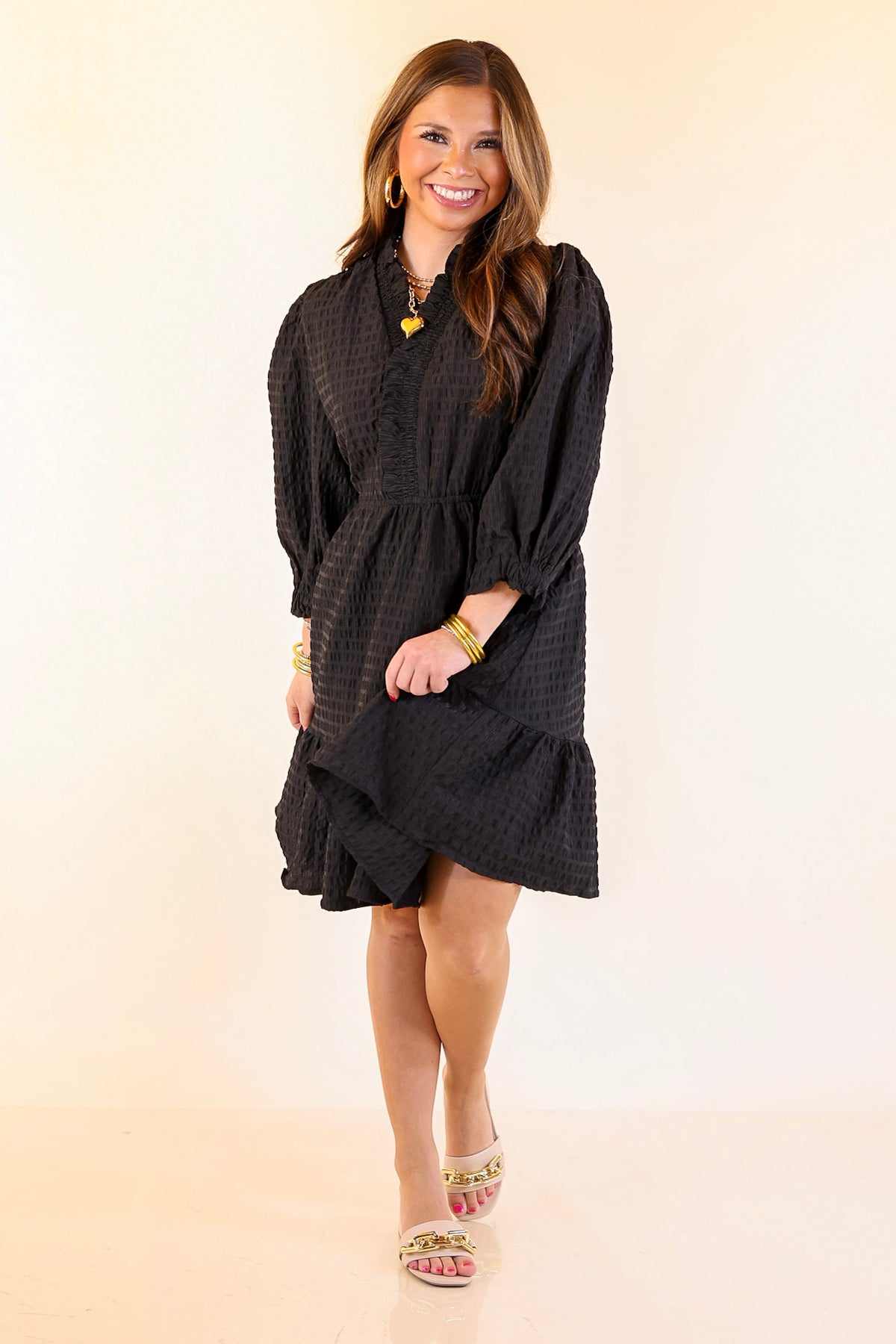 Call Me Captivating Dress with Smocked Waist and Long Sleeves Sleeves in Black