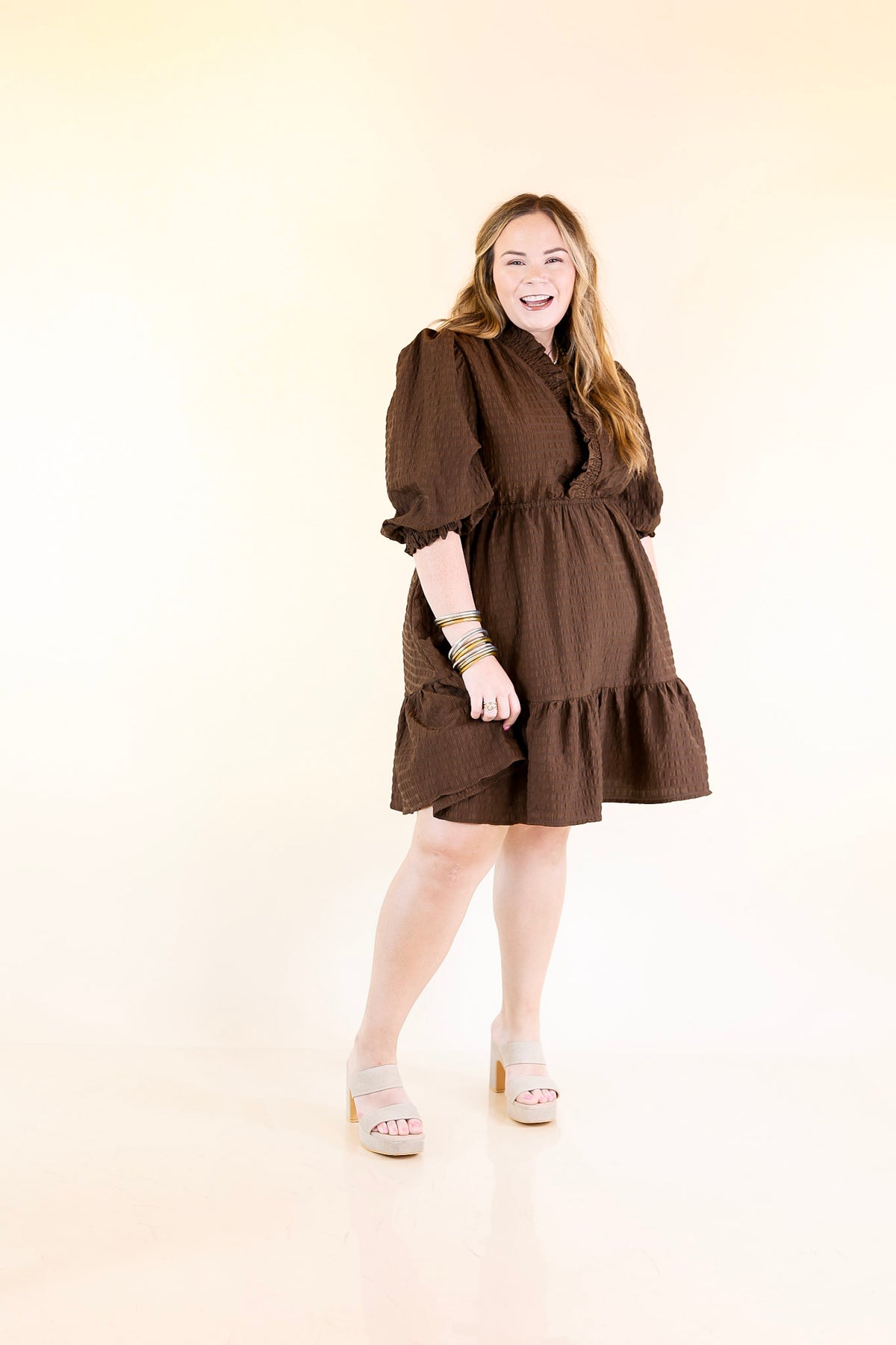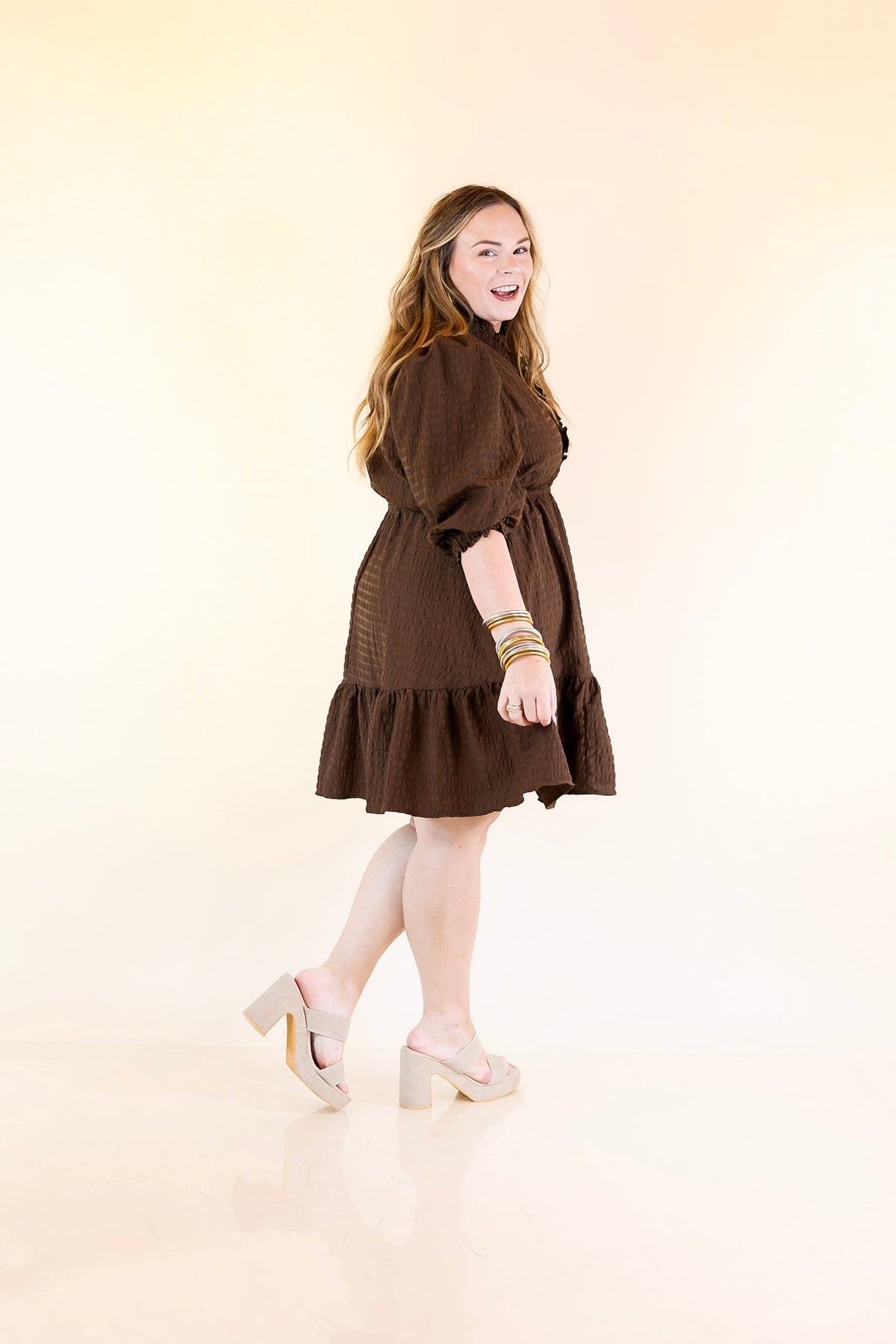 Call Me Captivating Dress with Smocked Waist and Long Sleeves Sleeves in Chocolate Brown