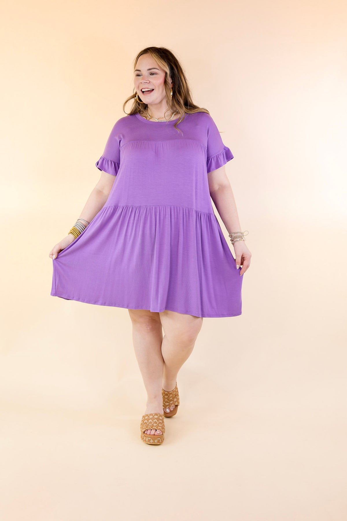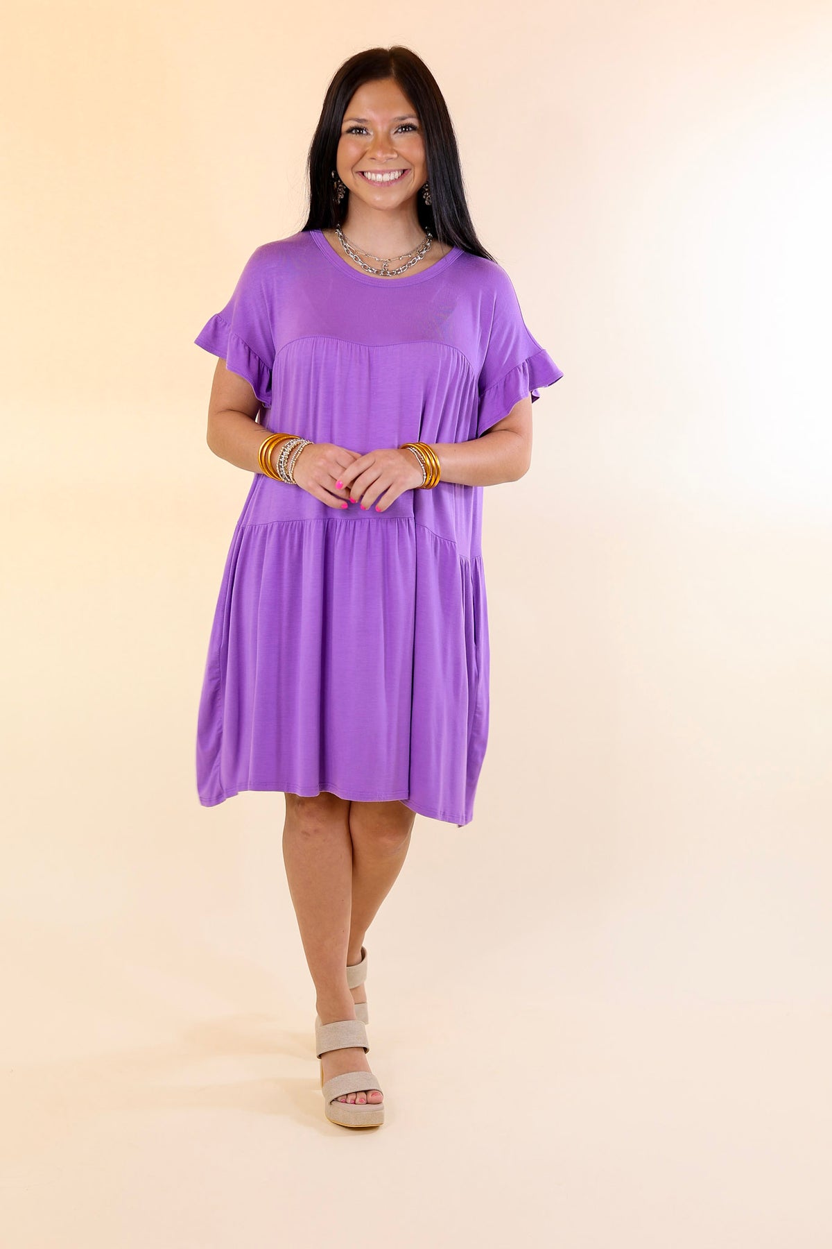 Gorgeous Girly Ruffle Sleeve Tiered Dress in Purple
