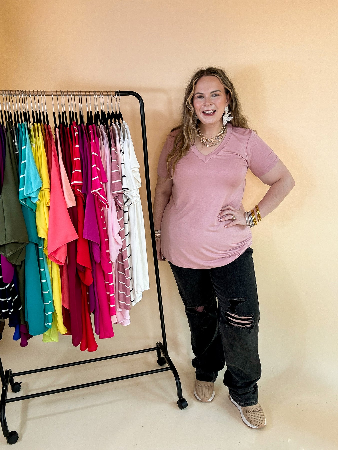 It's that simple to look so good! These cute tops are the key to effortless style! This v-neck tee has short sleeves, a slightly over sized fit, and an adorable bright color! Pair it with your favorite trousers or a pair of cut offs!