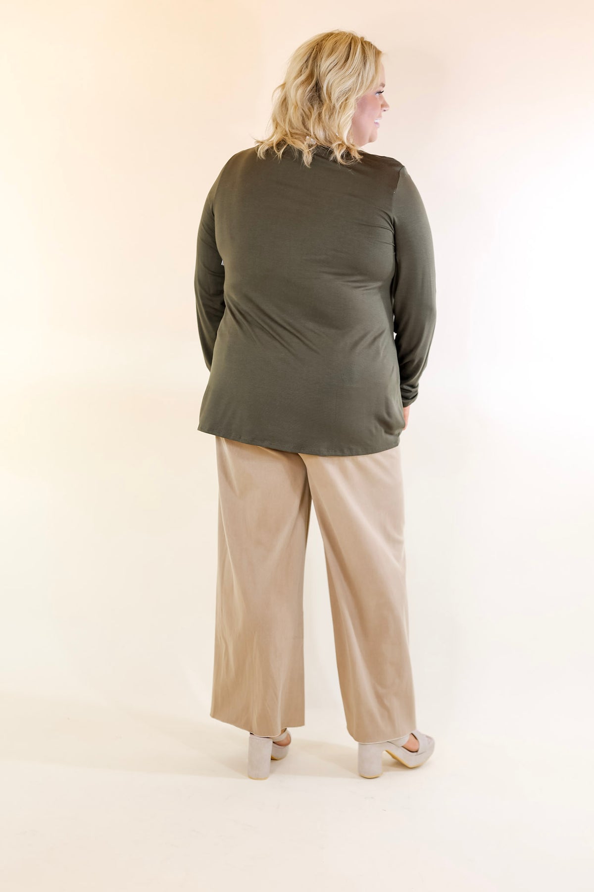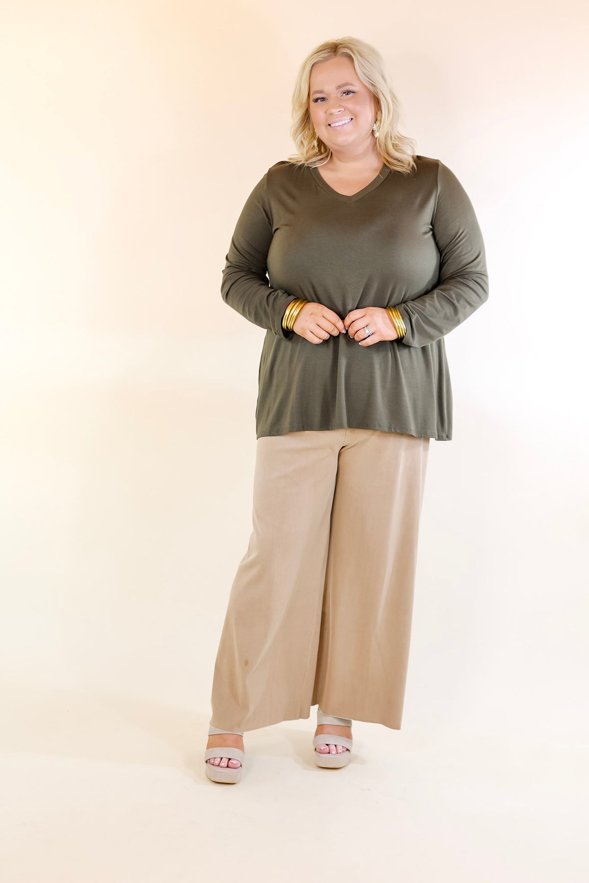 Plus Size | It's That Simple Solid V Neck Long Sleeve Tee in Olive Green