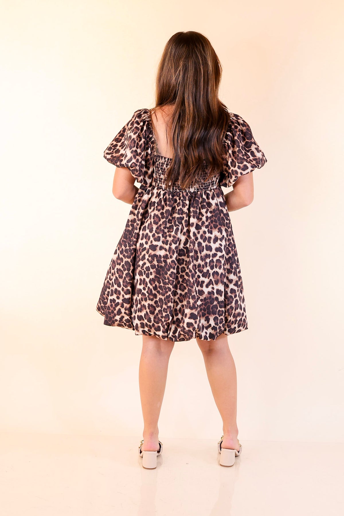 Own the Moment Dress with Short Balloon Sleeves in Cheetah Print