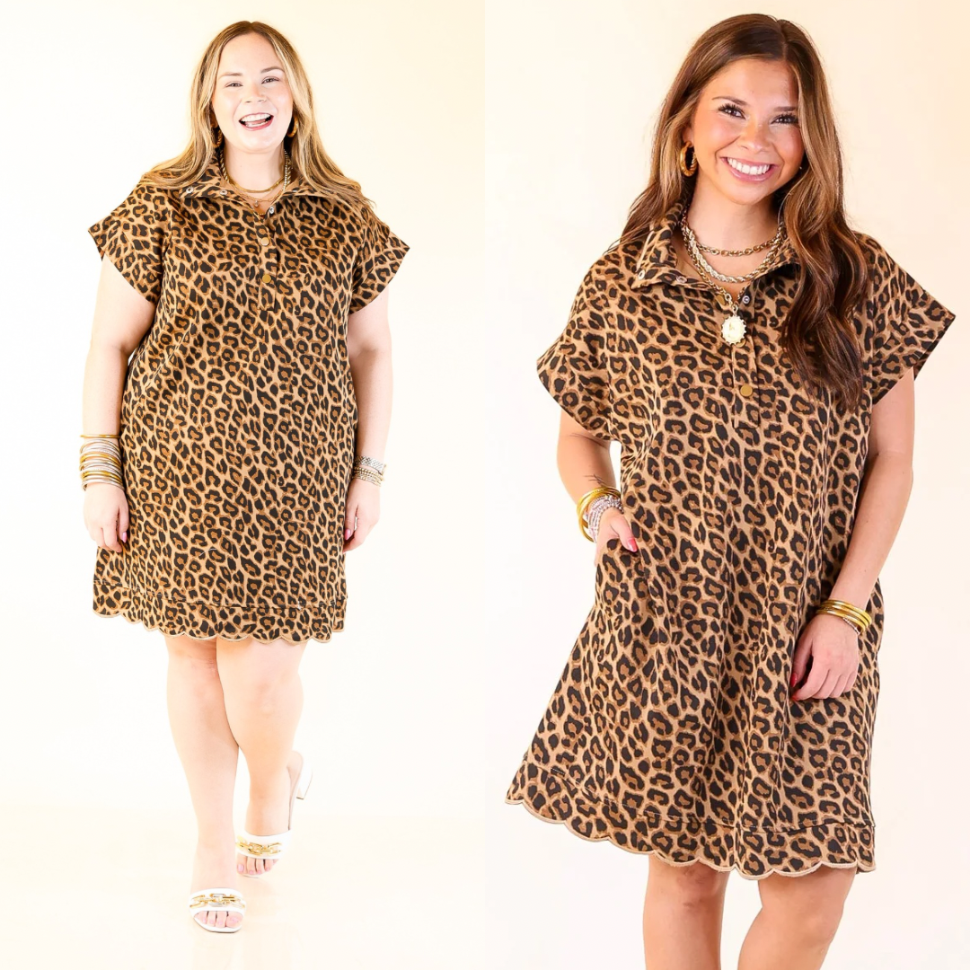 Roar and Ready Drop Sleeve with Scalloped Hem Dress in Leopard Print