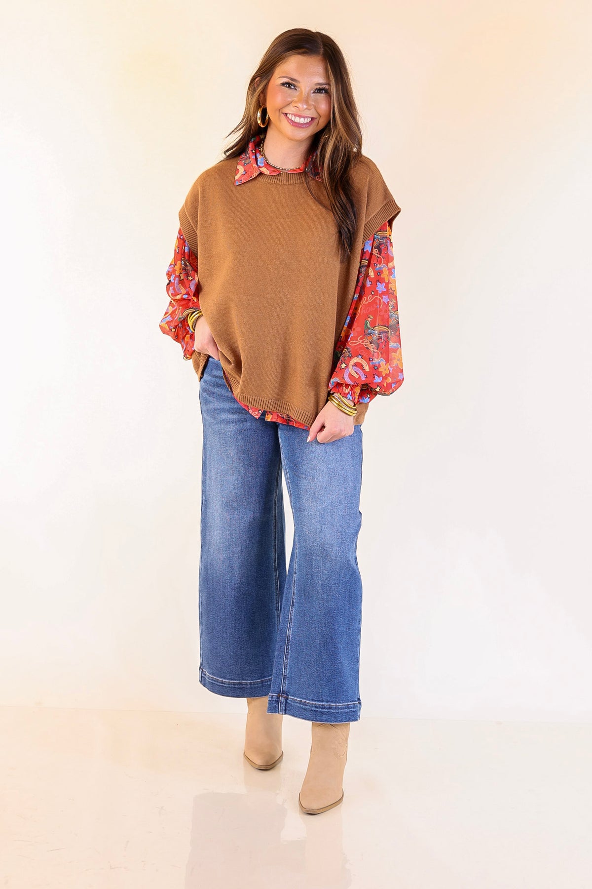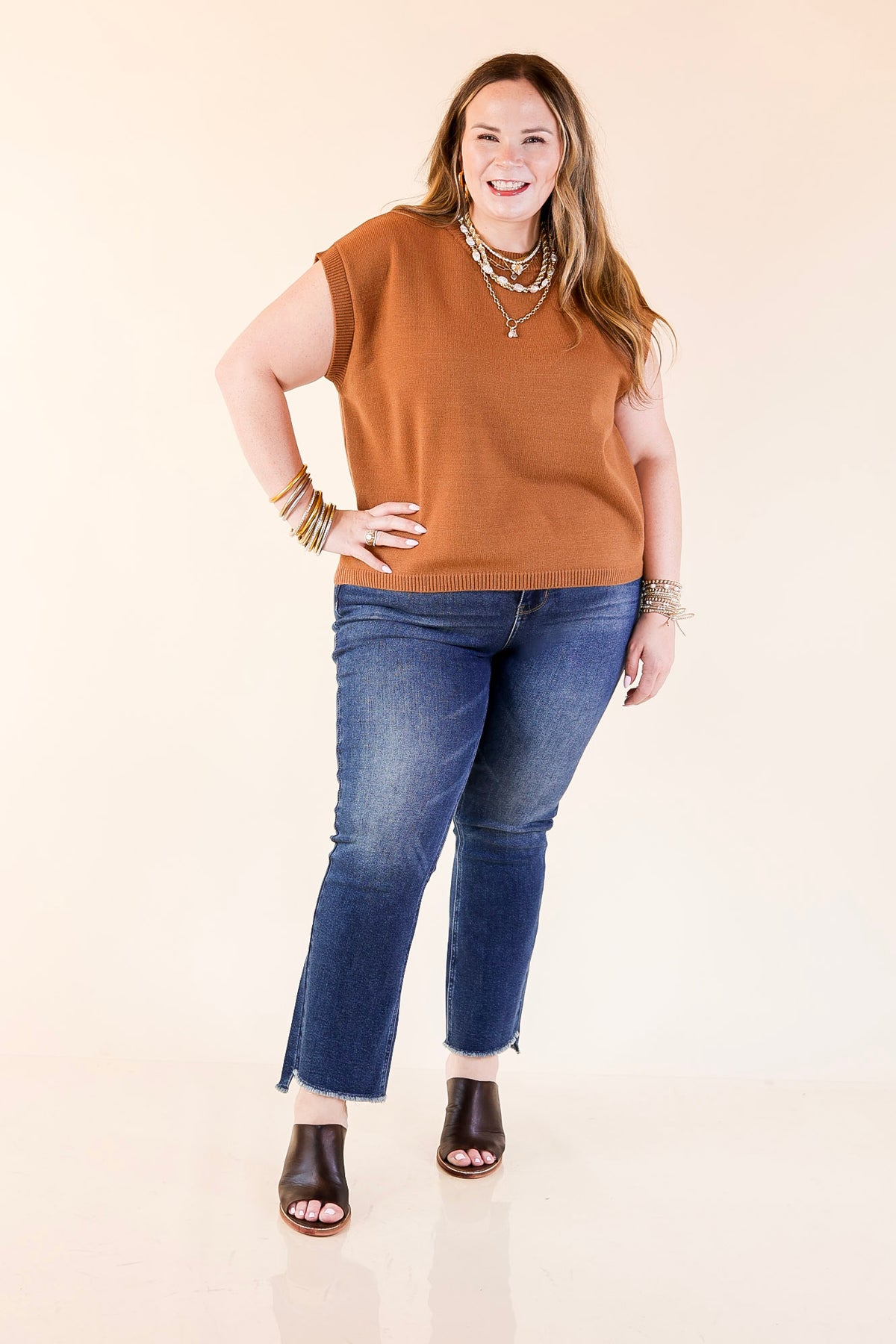 Effortlessly Yours Short Sleeve Crew Neck Sweater in Camel Brown