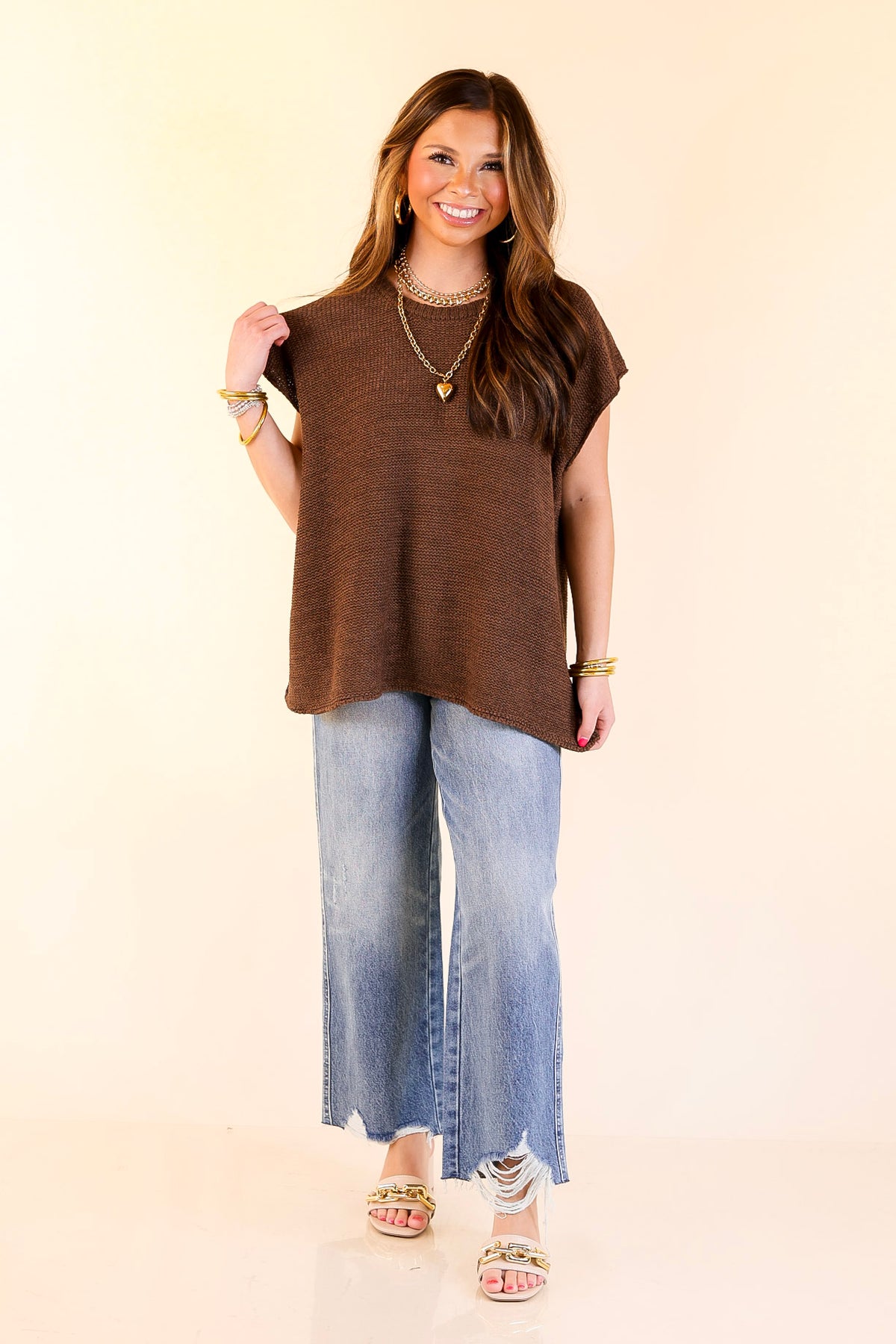 Say hello to your next go-to top: the Forever Favorite Oversized Crew Neck Sweater Vest in Chocolate Brown. Sleek, versatile, and endlessly wearable, this bestselling silhouette features a classic crew neckline, relaxed drop shoulder fit, and subtle side slits for easy movement. The lightweight knit layers effortlessly over button-downs or tees, or can be styled solo for a clean, confident look. With its oversized shape and timeless color, it’s the perfect base for your elevated everyday outfits.
