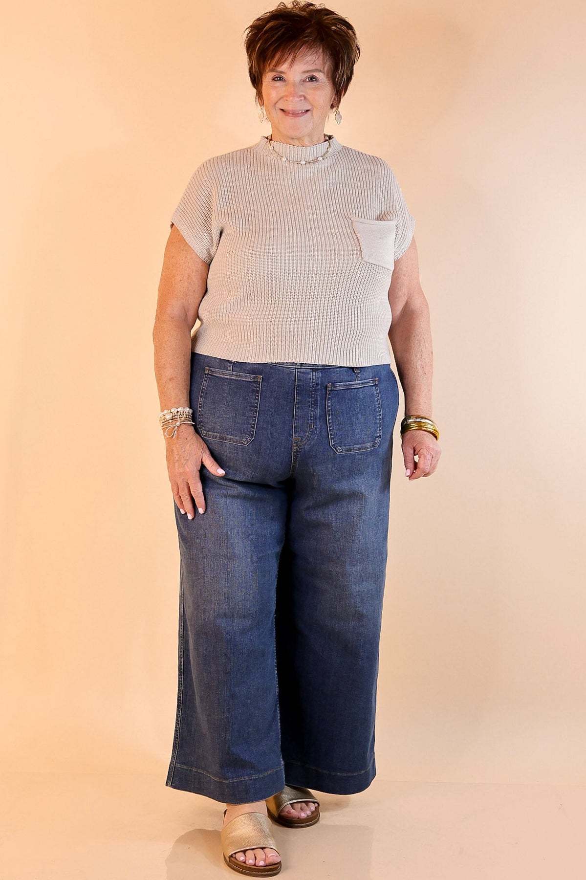 The Repeat Worthy top is the ultimate blend of comfort and style—so good, you’ll want to wear it on repeat. Designed with a chic mock neck, short sleeves, and a stylish front pocket, this versatile sweater top is perfect for effortless everyday wear. The relaxed yet polished fit makes it easy to dress up with trousers or keep it casual with denim. Lightweight yet cozy, it’s an ideal transitional piece for any season.