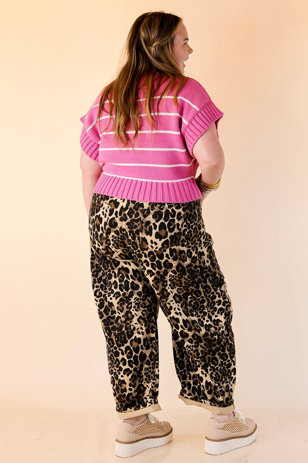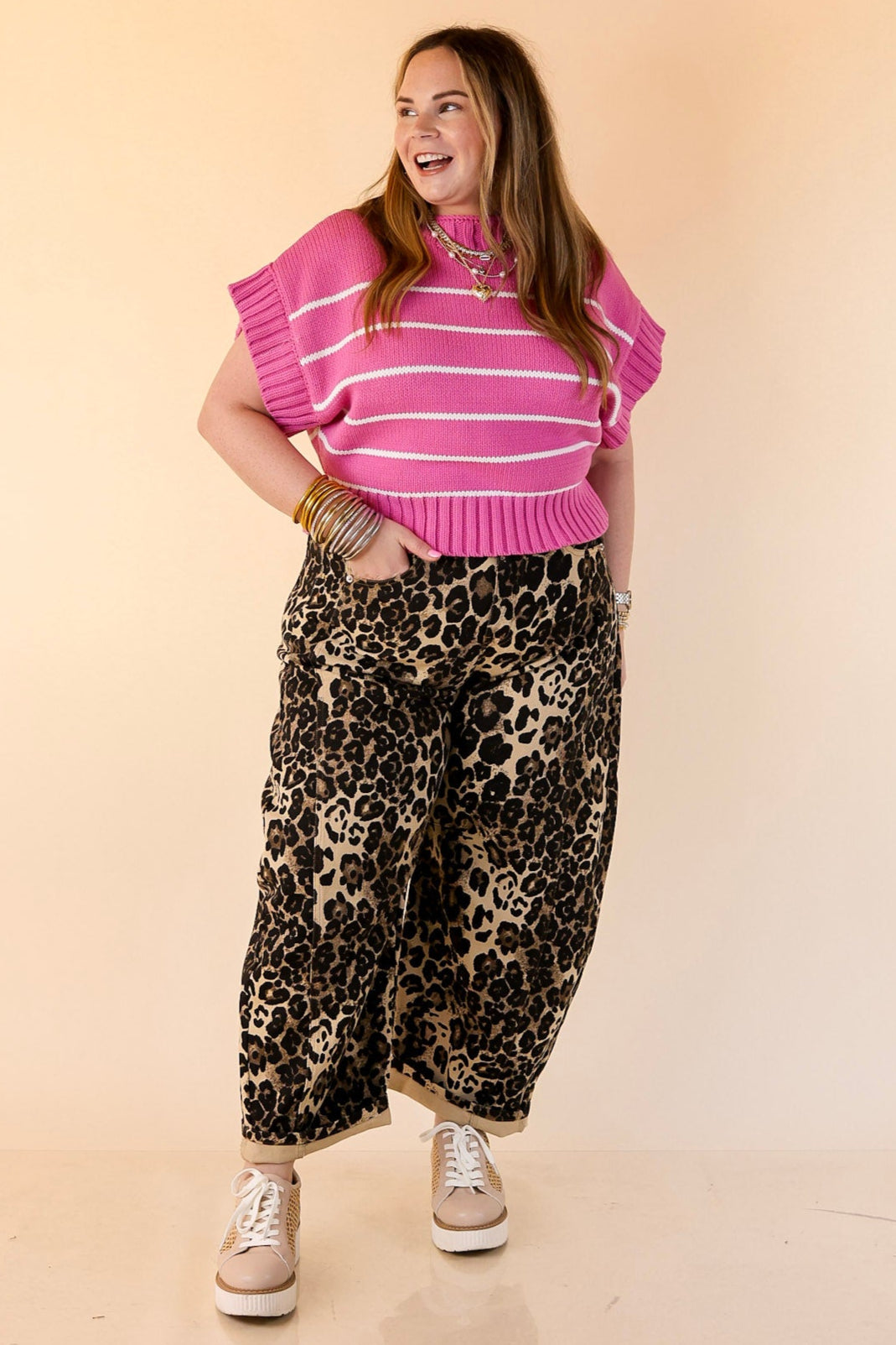 Sweet in Stripes Short Sleeve Striped Mock Neck Sweater in Bright Mauve Pink