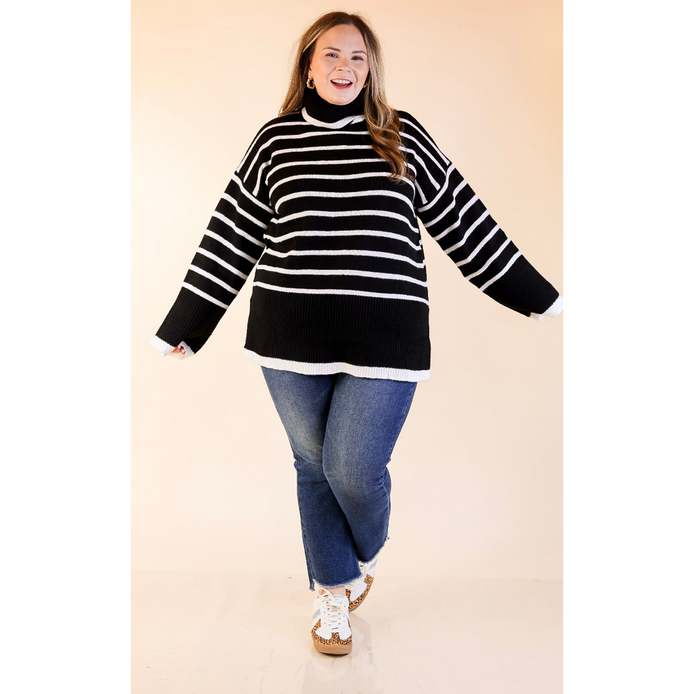 Mud Pie | Dunn Turtleneck Sweater with White Stripes in Black