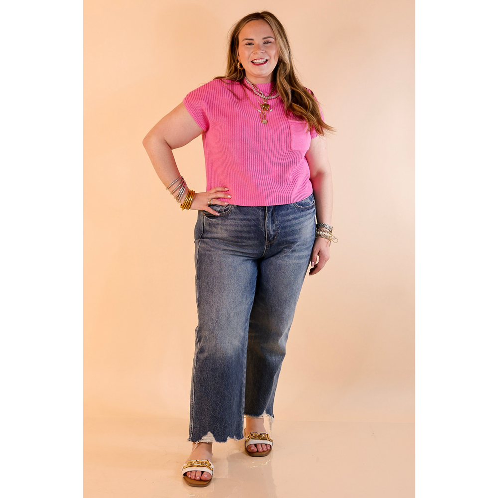 Repeat Worthy Cap Sleeve Cropped Sweater with Front Pocket in Candy Pink