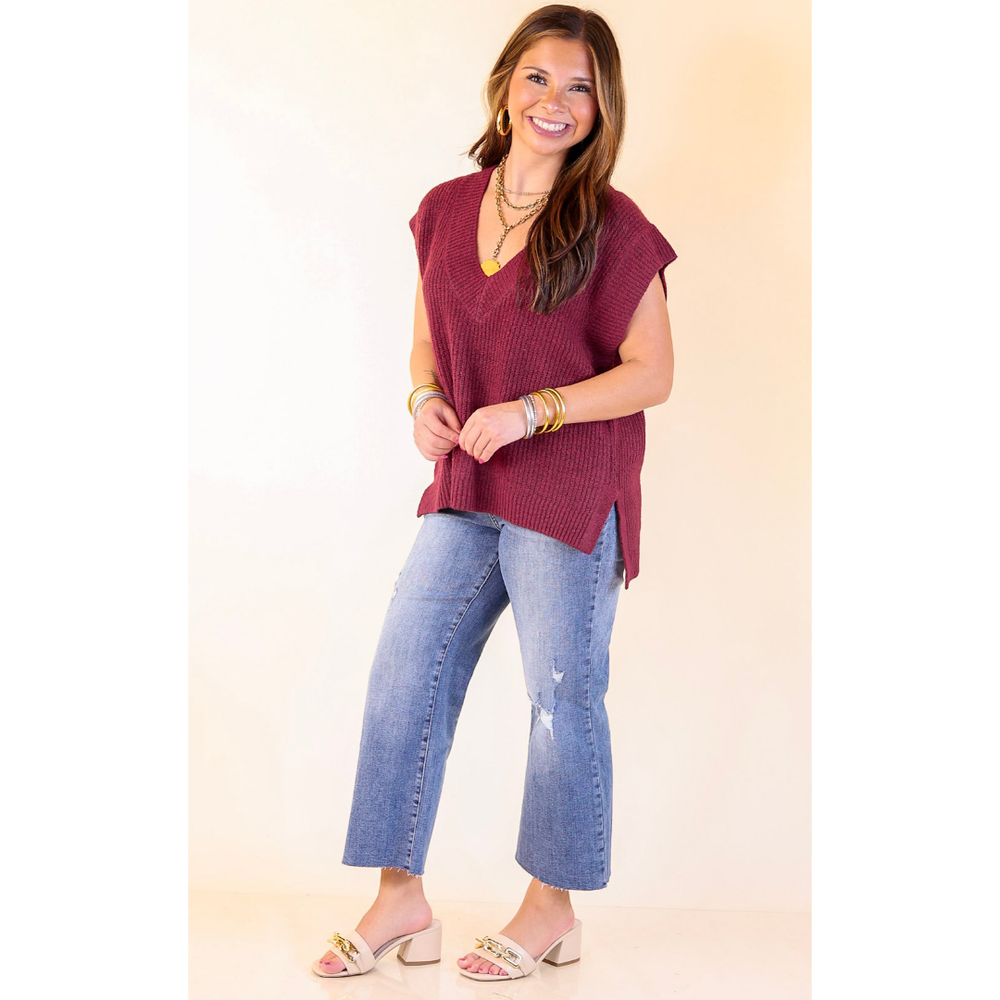 Fall For You Textured V-Neck Oversized Knit Sweater Vest Top in Maroon