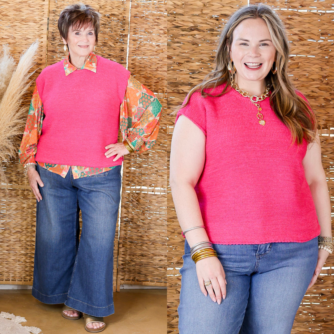 Forever Favorite Oversized Crew Neck Sweater Vest in Hot Pink