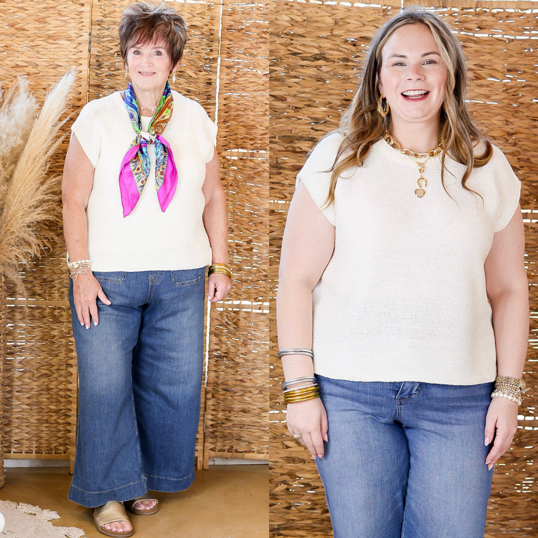 Repeat Worthy Cap Sleeve Cropped Sweater with Front Pocket in Ivory
