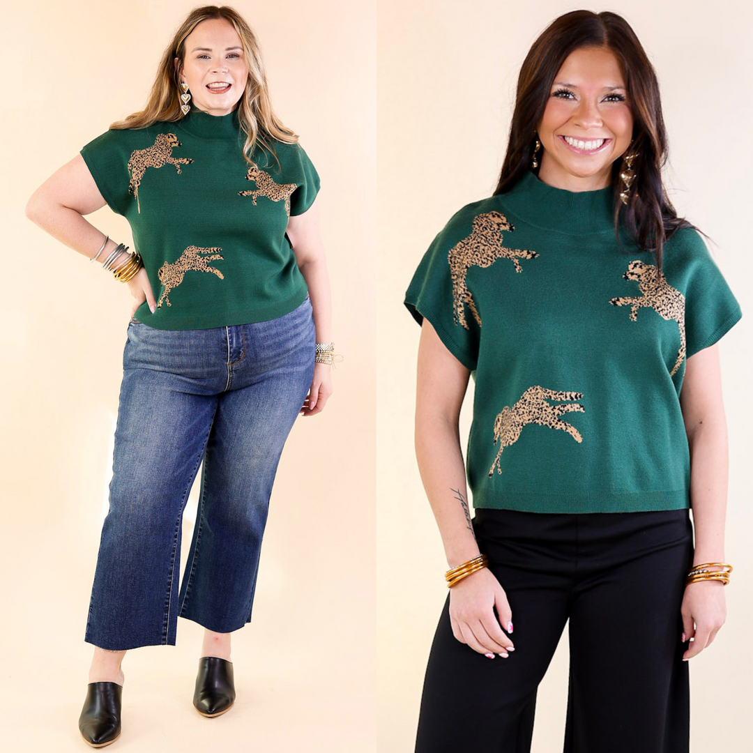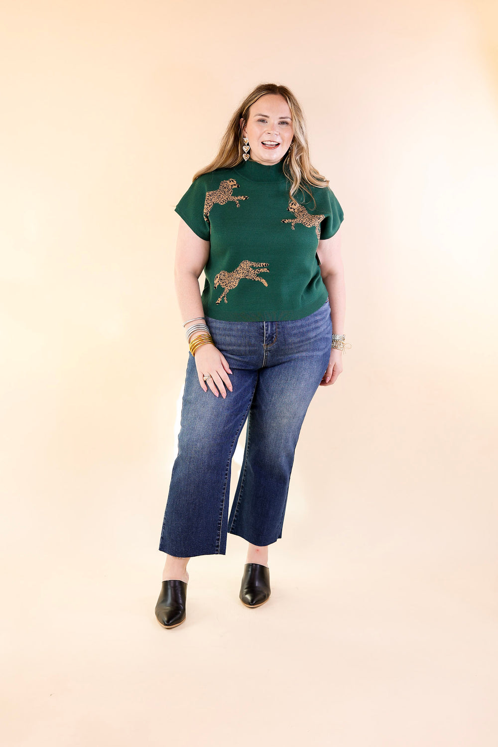 Upscale Charm Cheetah Print Sweater Top in Hunter Green