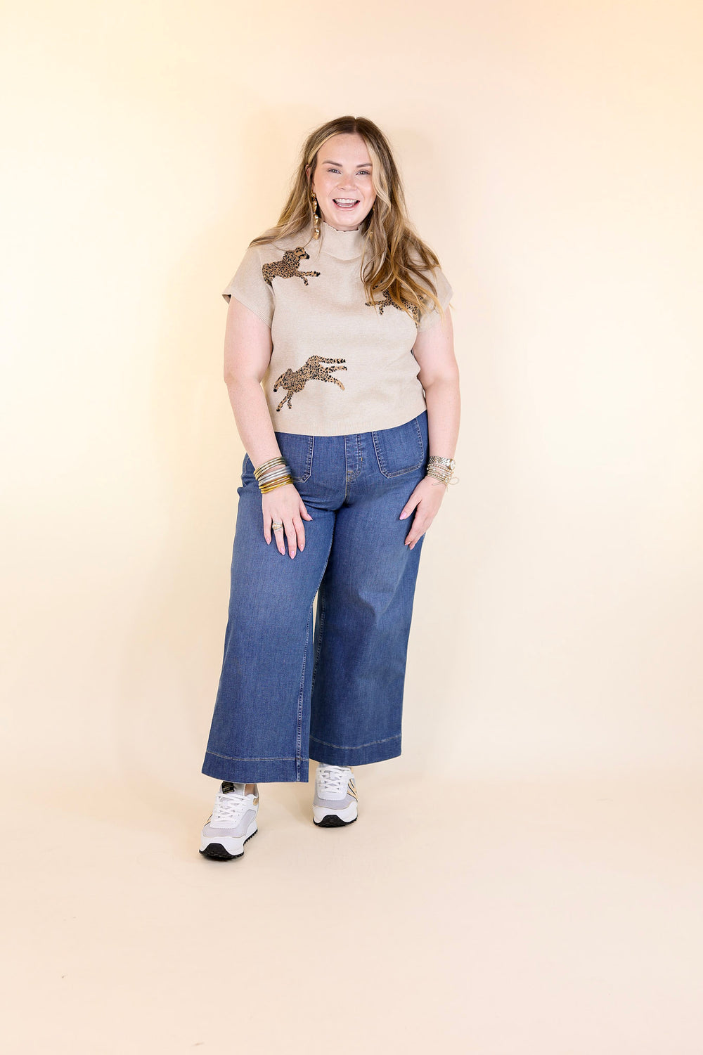Upscale Charm Cheetah Print Sweater Top in Oatmeal Beige