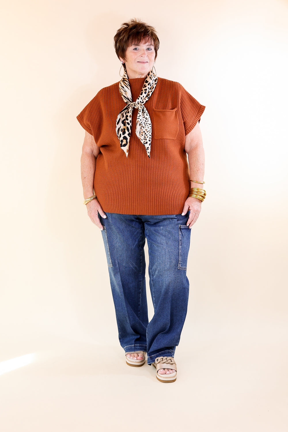 City Sights Cap Sleeve Sweater Top in Copper Brown