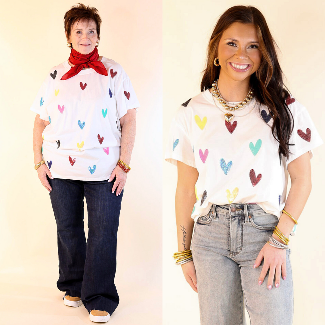 Queen Of Sparkles | Fluttering Hearts Multi-Colored Sequin Top in Black