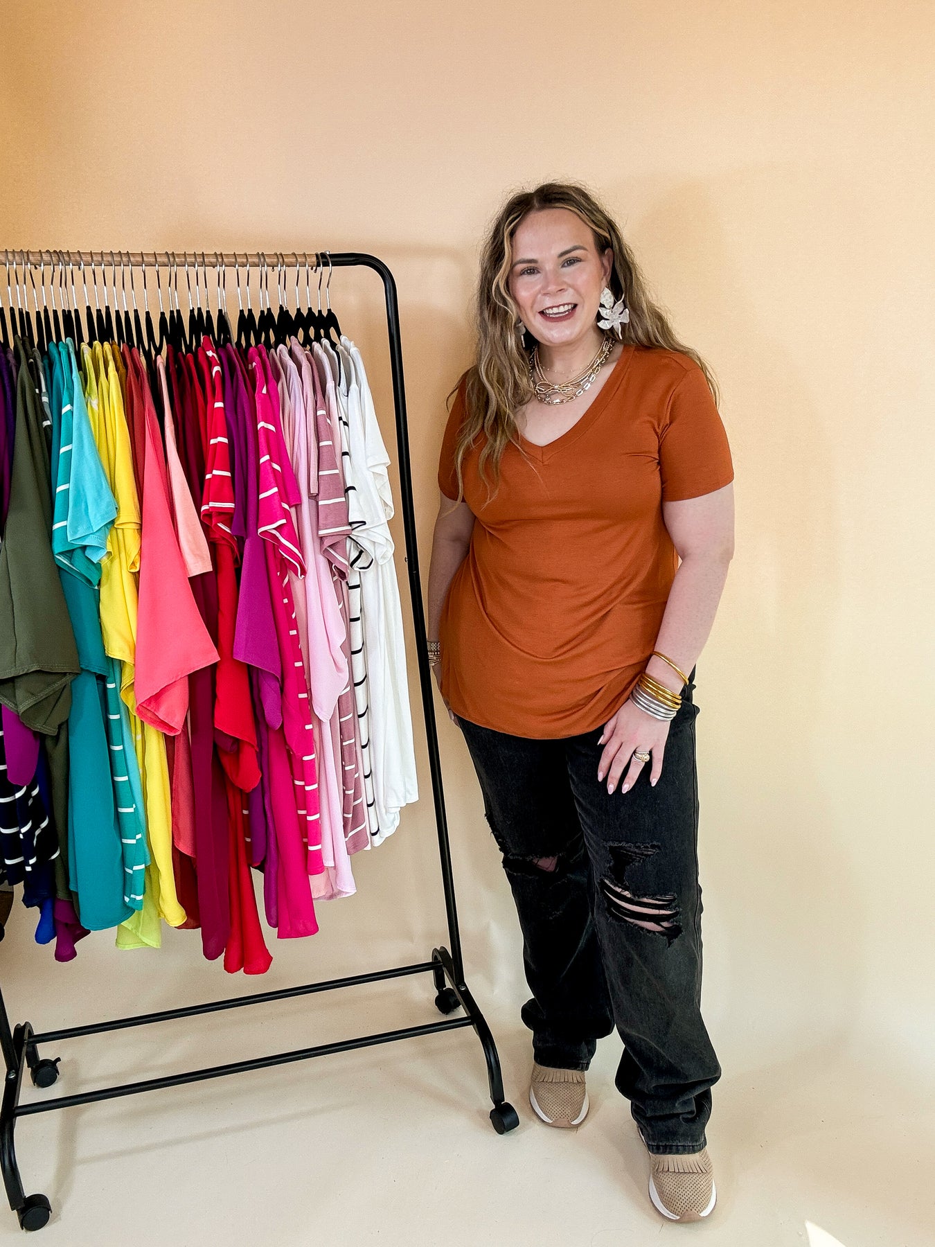 It's that simple to look so good! These cute tops are the key to effortless style! This v-neck tee has short sleeves, a slightly over sized fit, and an adorable bright color! Pair it with your favorite trousers or a pair of cut offs!