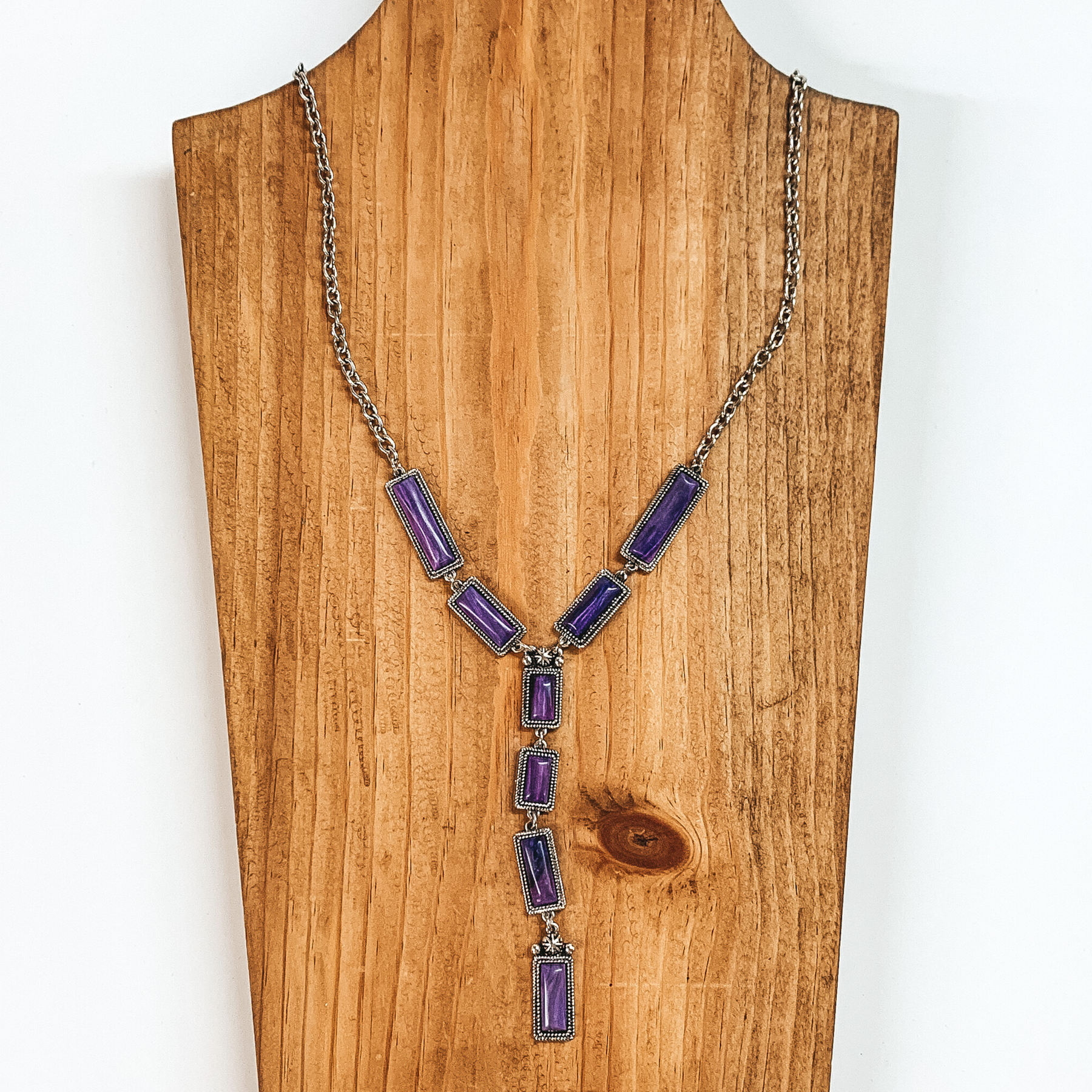 Silver Tone Lariat Necklace with Faux Purple Stones