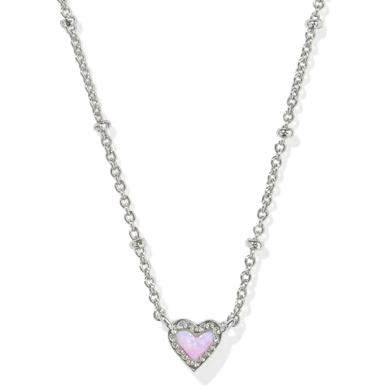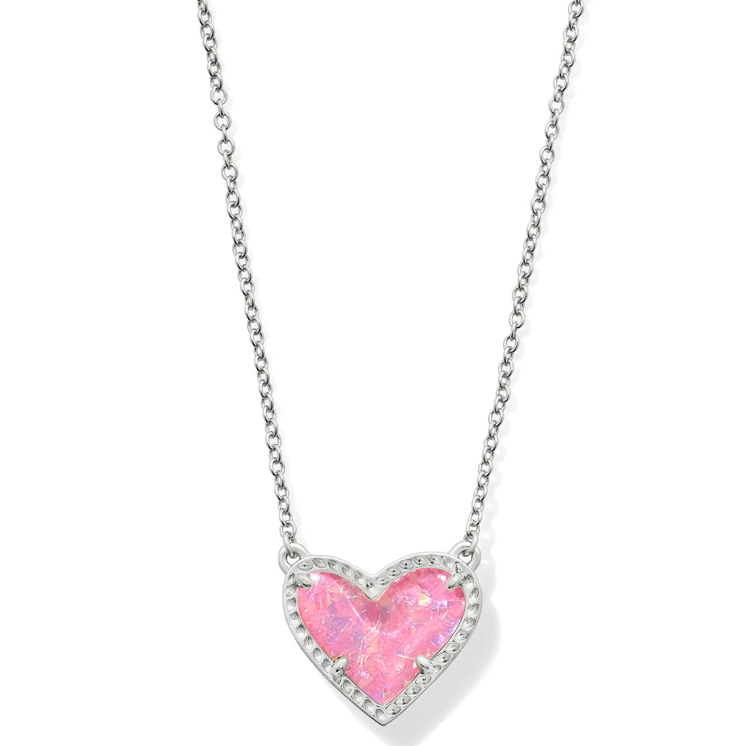 Kendra Scott | Ari Heart Silver Pendant Necklace in Pink Iridescent Glitter Glass