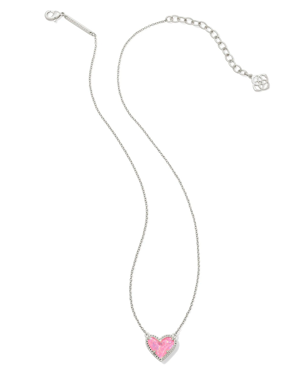 Kendra Scott | Mini Ari Heart Silver Short Pendant Satellite Necklace in Bubblegum Pink Kyocera Opal