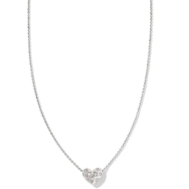 Kendra Scott | Holland Silver Heart Short Pendant Necklace in White Crystal