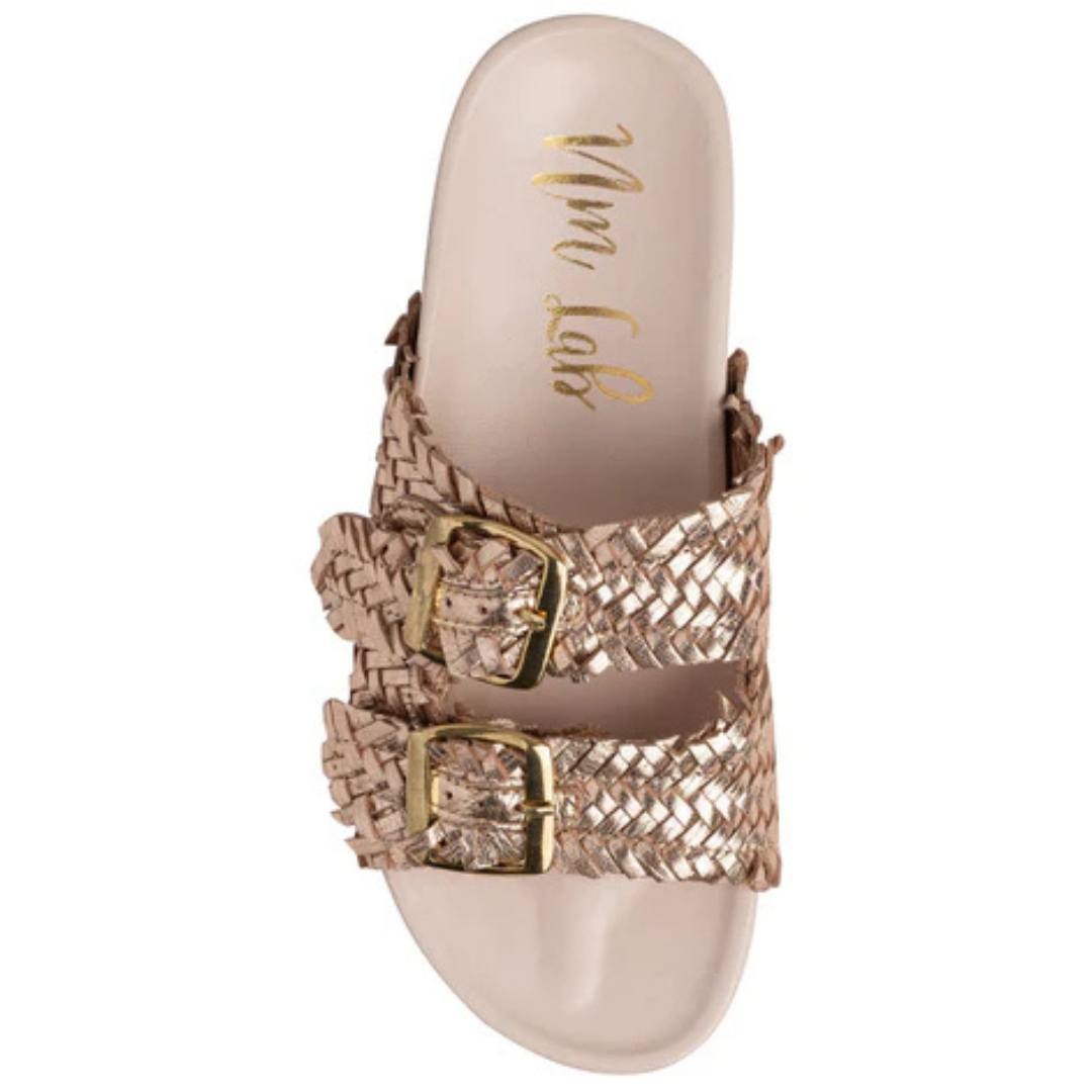 Online Exclusive | Intertwine Woven Strap Slide in Champagne Gold