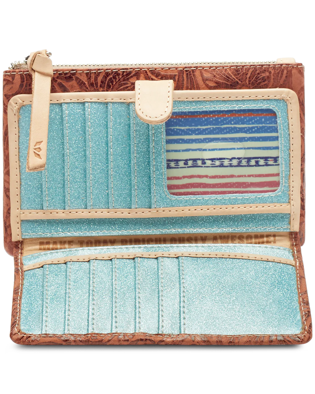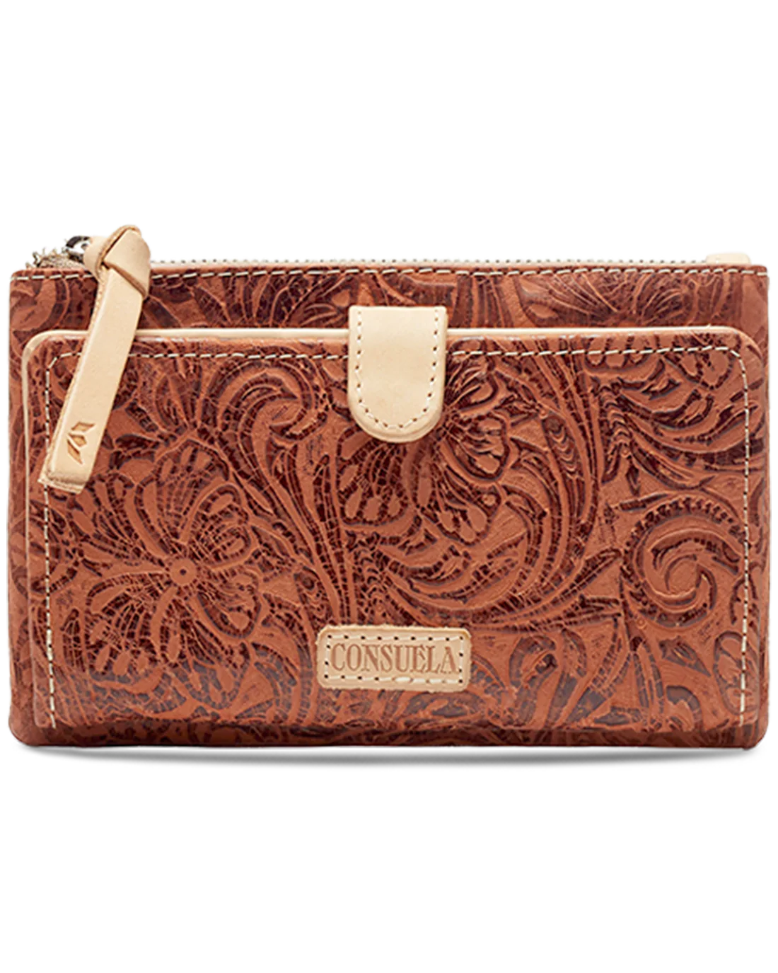 Our Sally Slim Wallet is compact in size, yet complete with all the compartments you need to stay organized! Our Sally tooled leather bifold is secured with a snap tab closure and filled with functional card slots and pockets.
