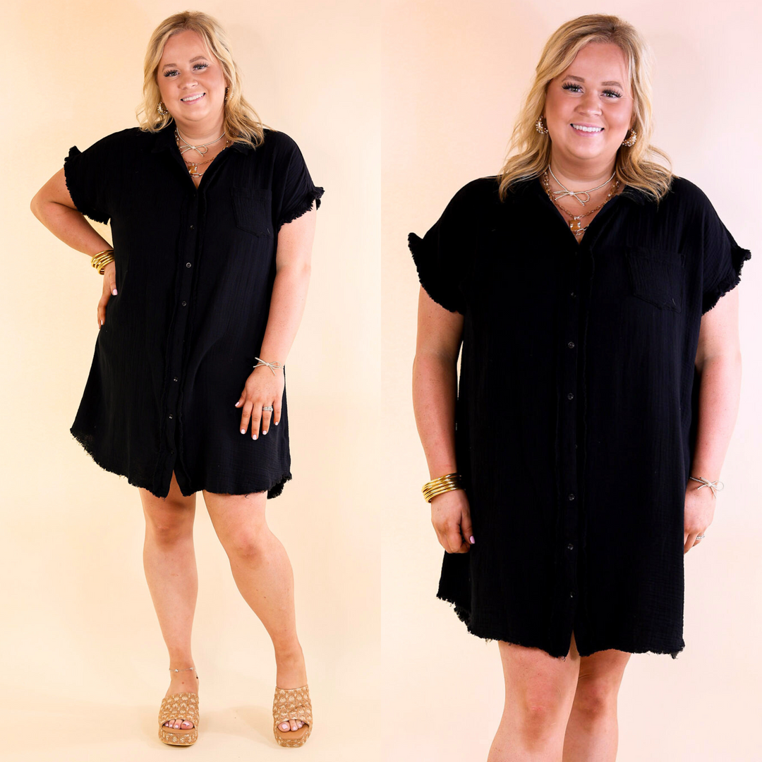 Keeps Getting Better Button Up Dress with Collared Neckline in Black